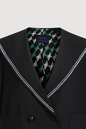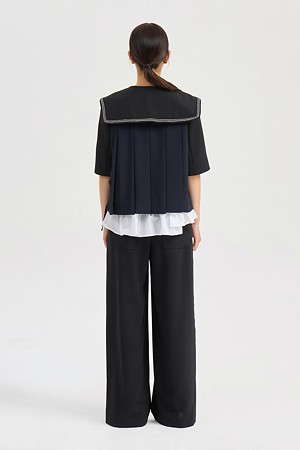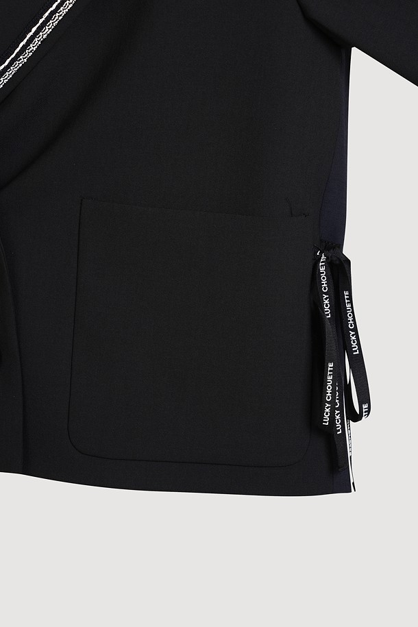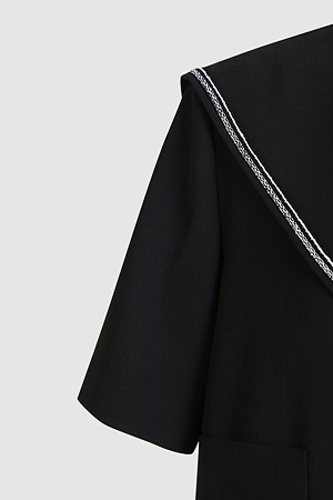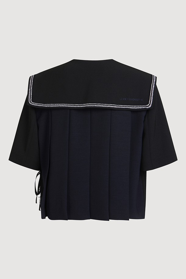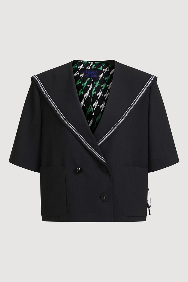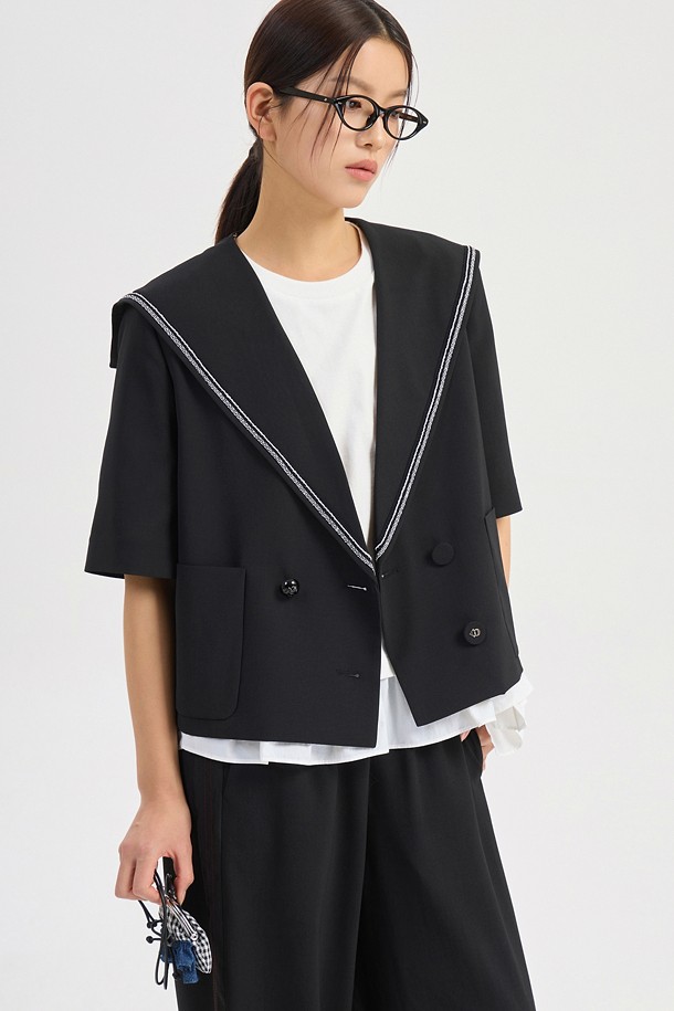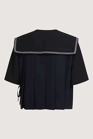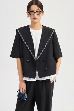 Sailor Back Pleats Short Sleeve Poly Jacket (black)