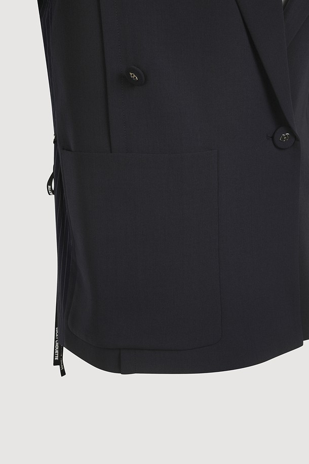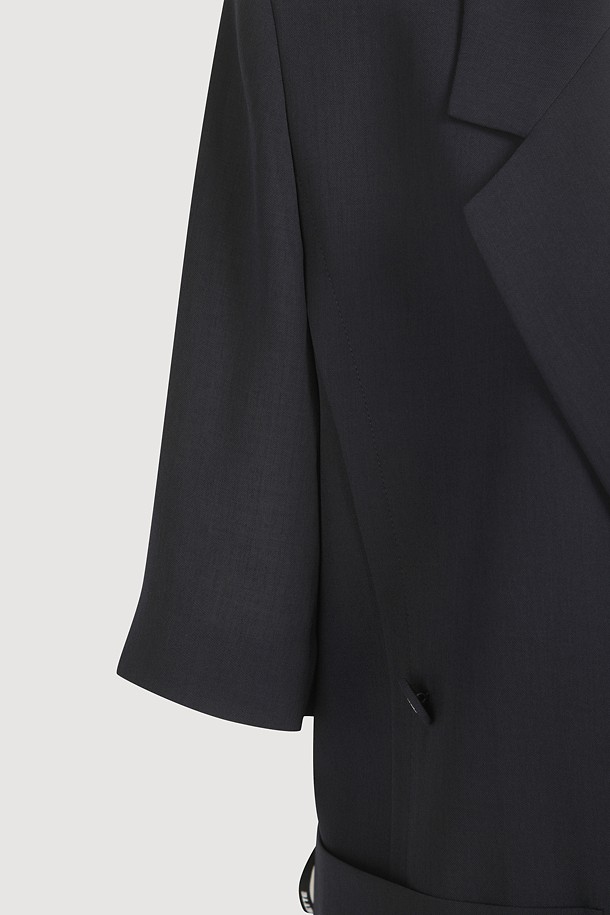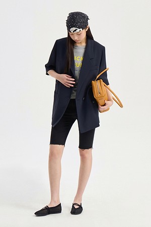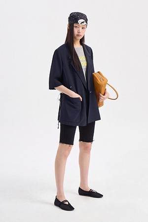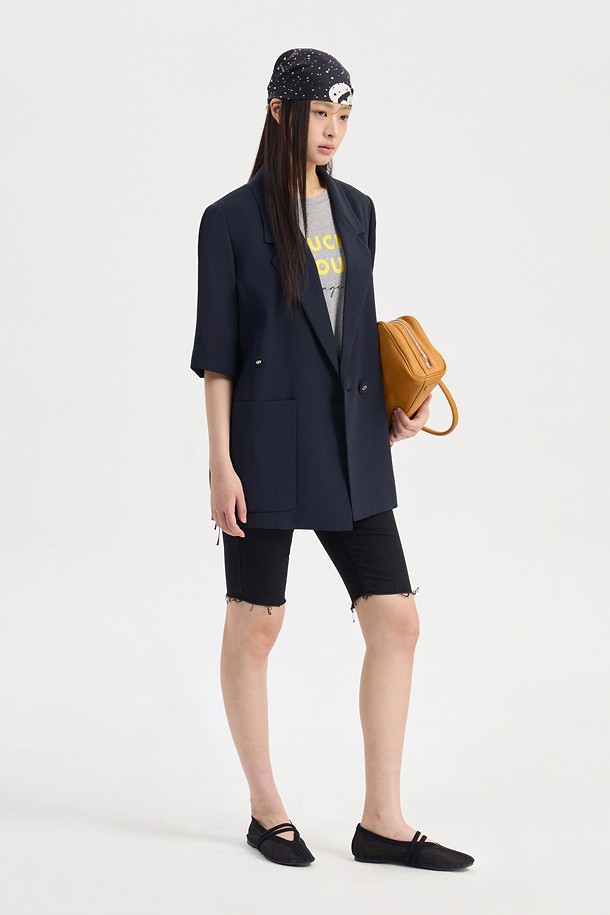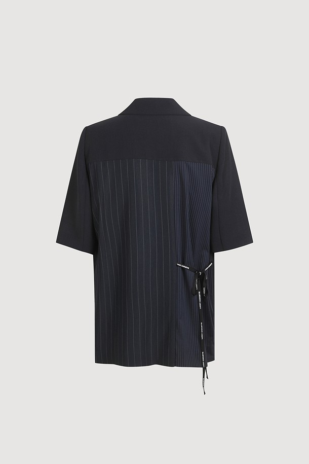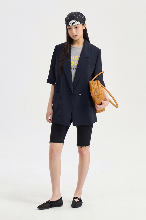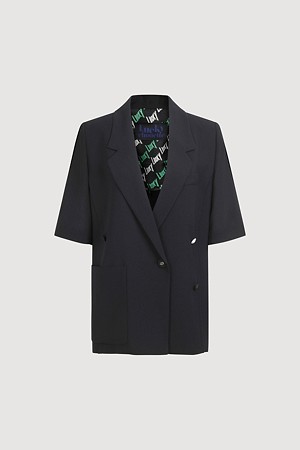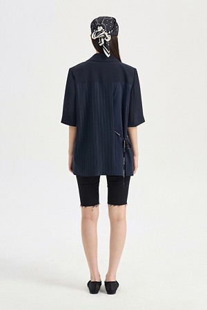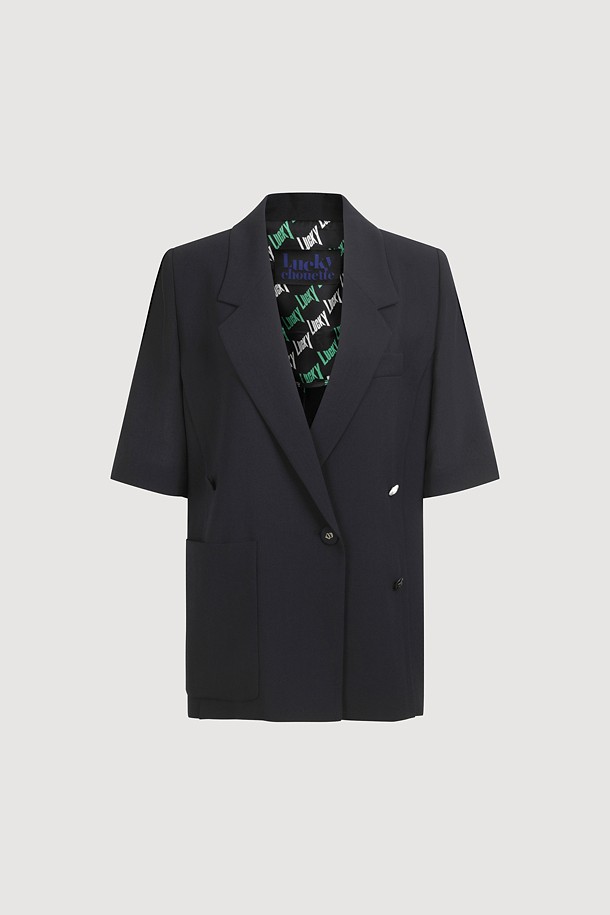 Front And Back Color Blend Short Sleeve Single Jacket (dark navy)