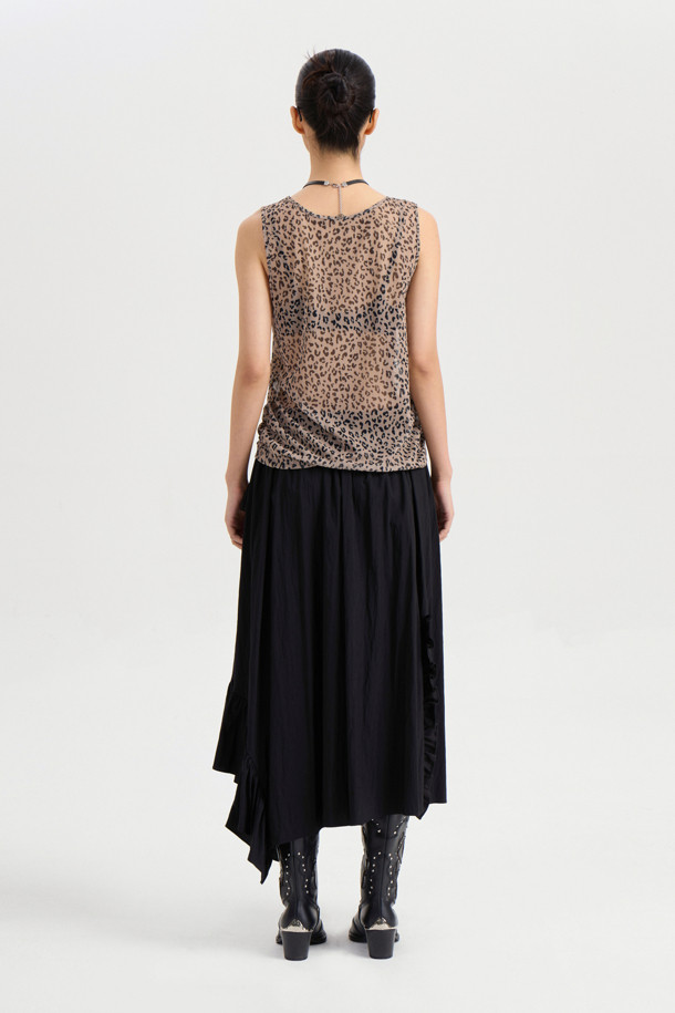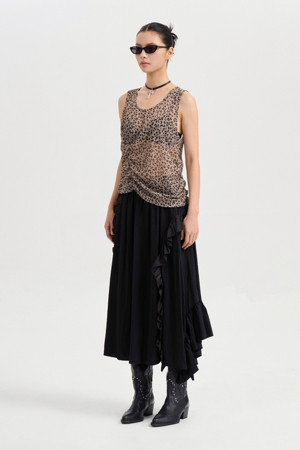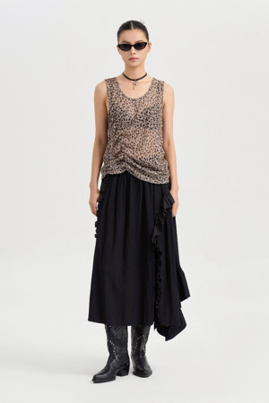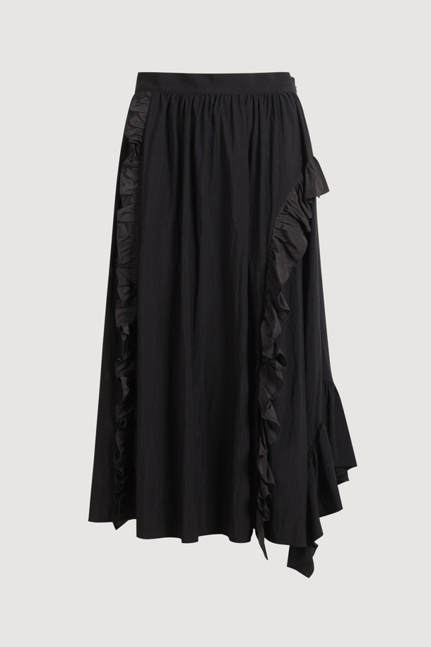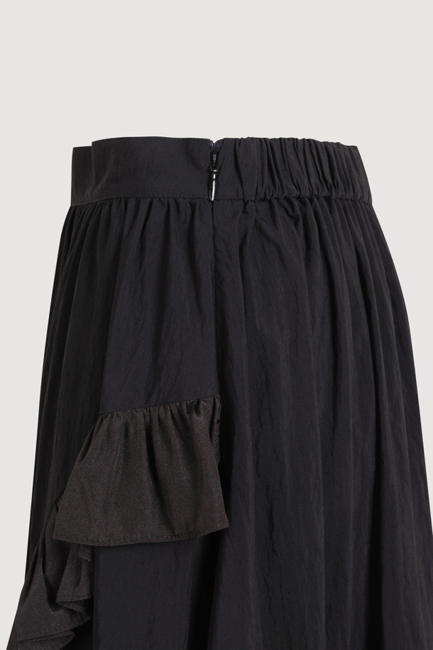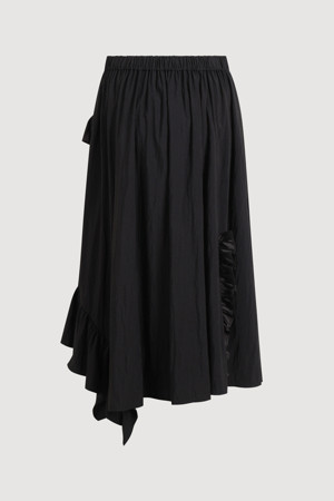 Frill Point Back Banding Long Skirt (black)