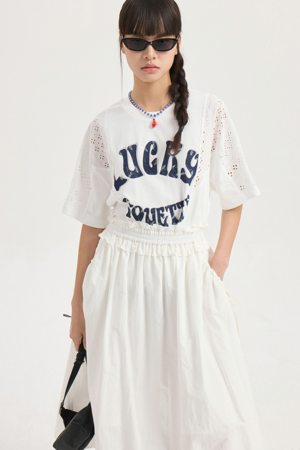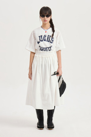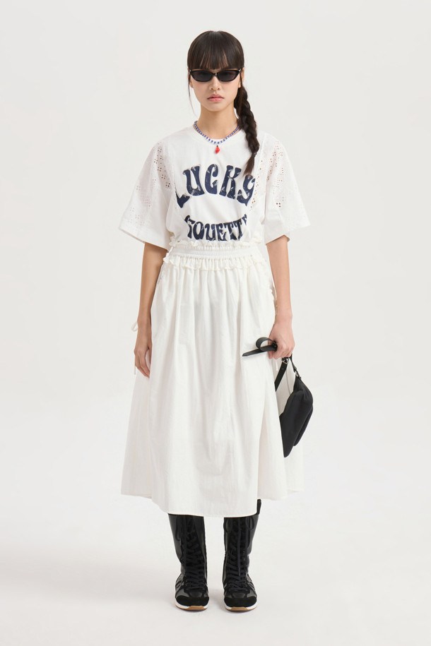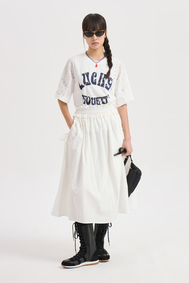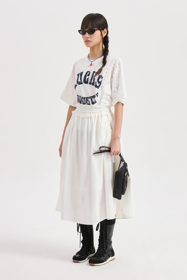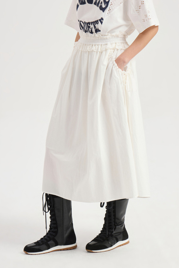 Shirring Banding Long Skirt (white)