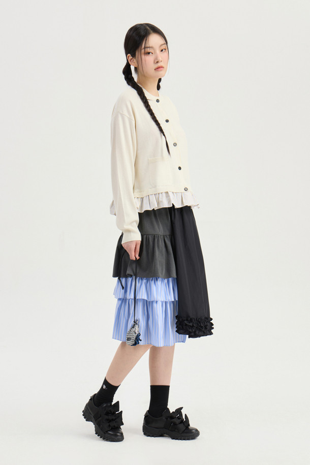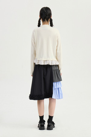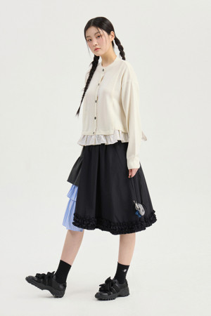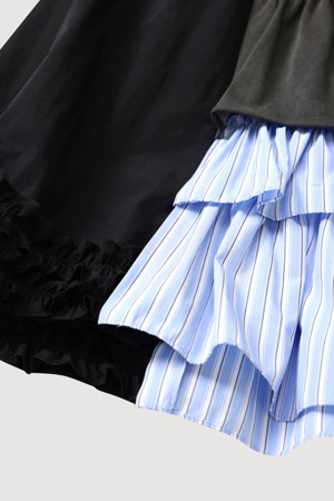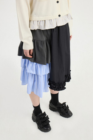 Material Mix Frill Banding Skirt (multi color)