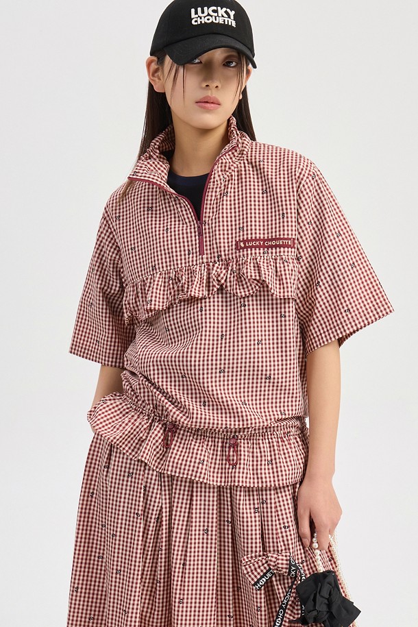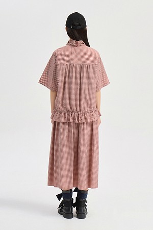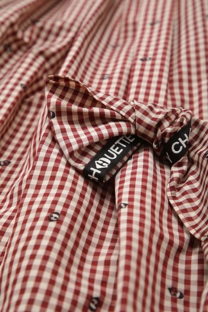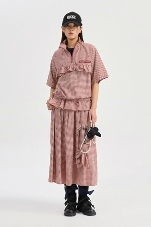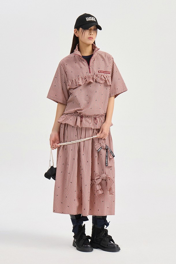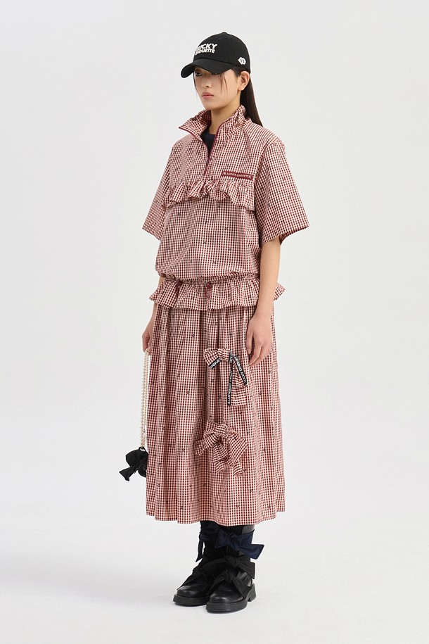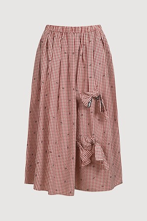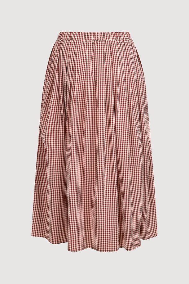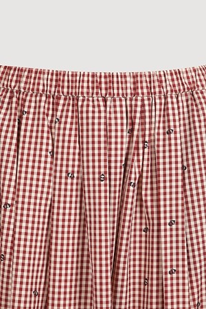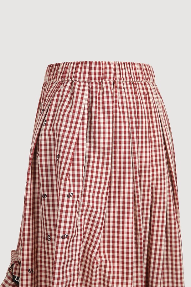Ribbon Point Check Banding Long Skirt (wine)