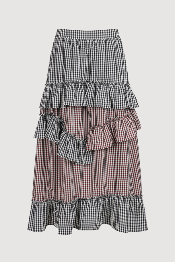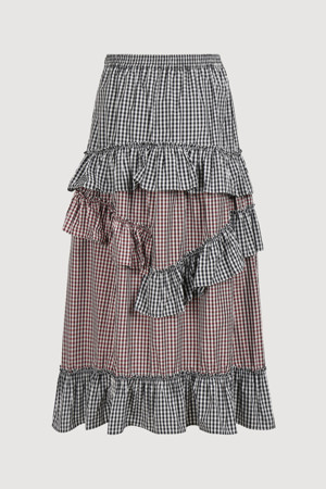 [Atelier] Frill Point Check Back Banding Long Skirt (multi color)