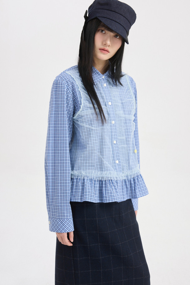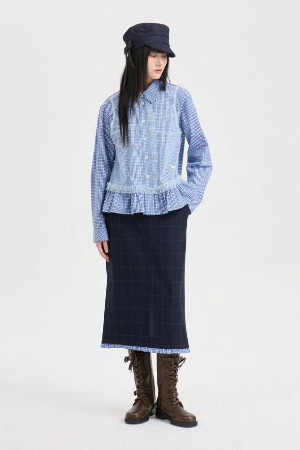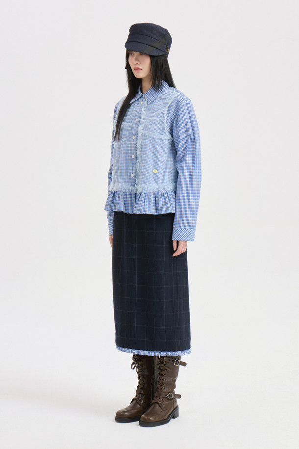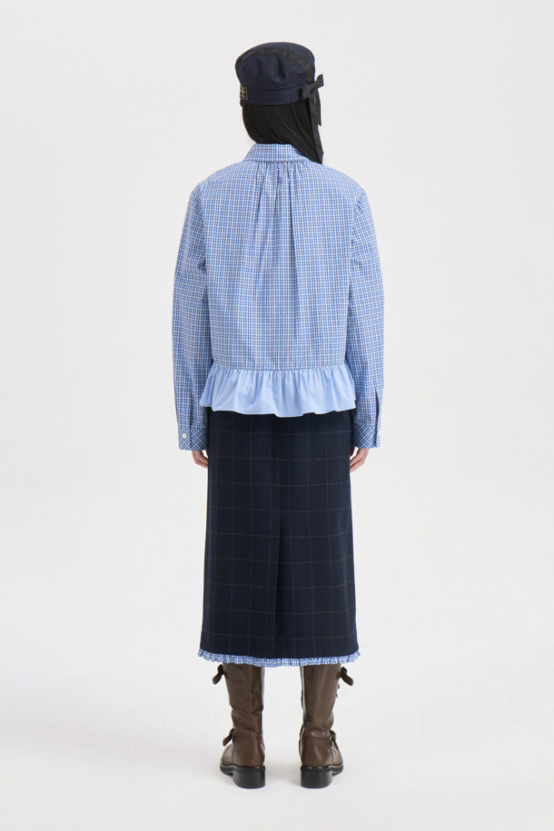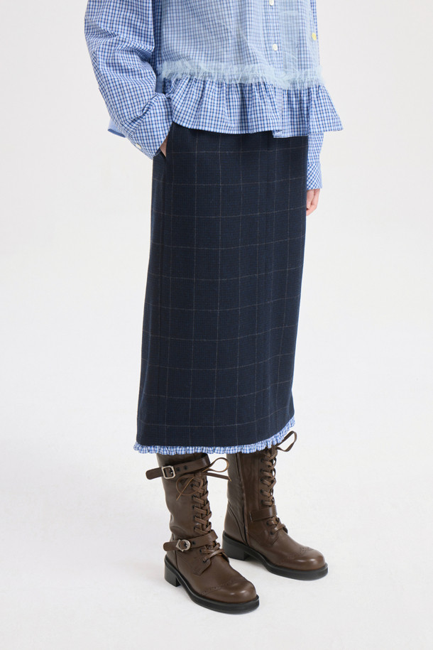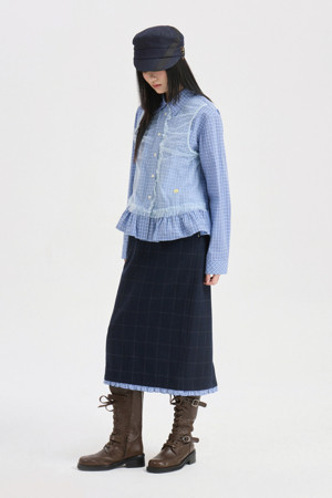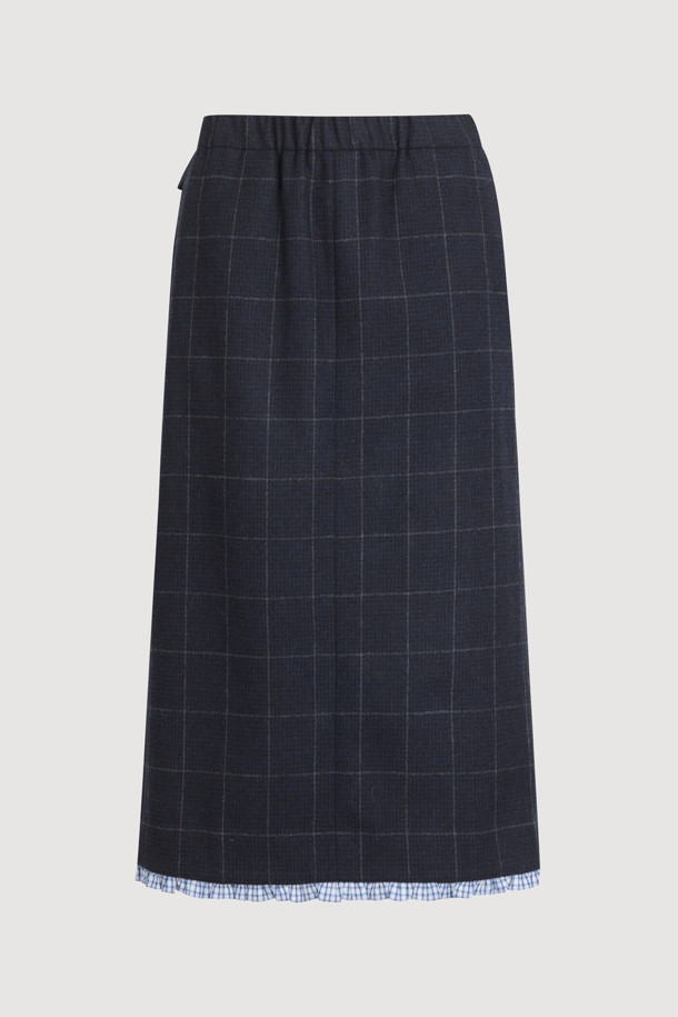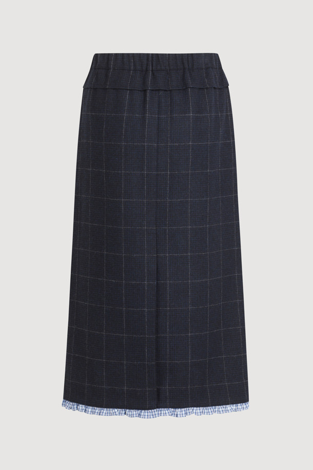 Hem Frill H-line Banding Skirt (dark navy)