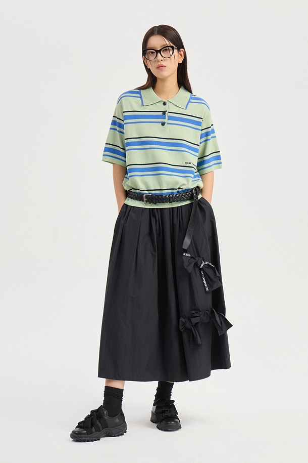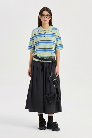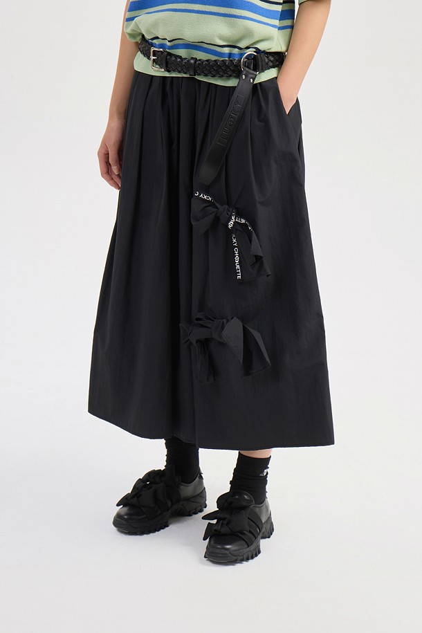 Ribbon Point Banding Long Skirt (black)