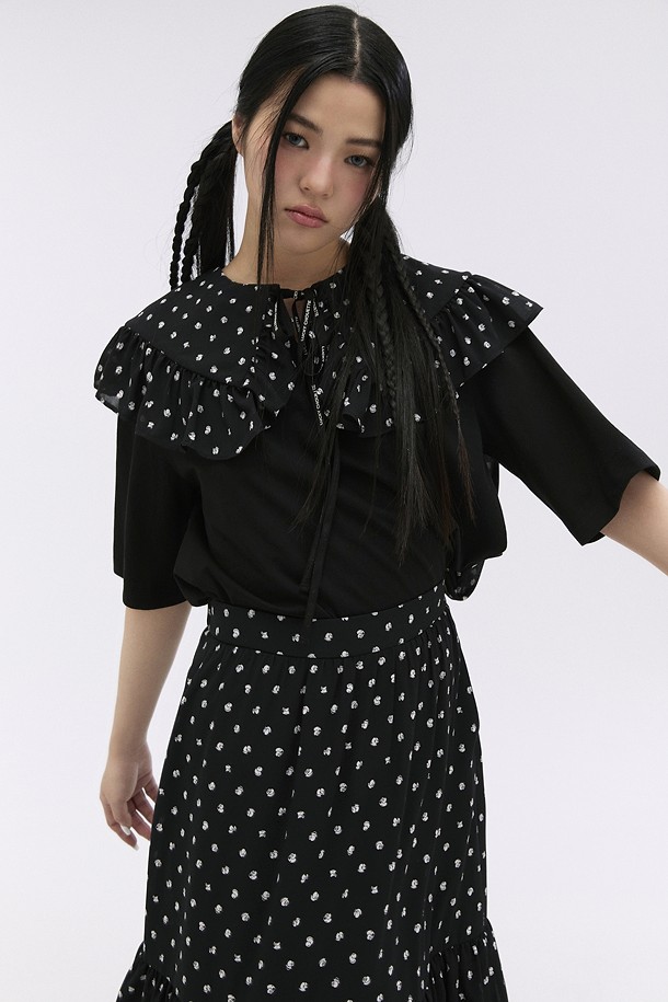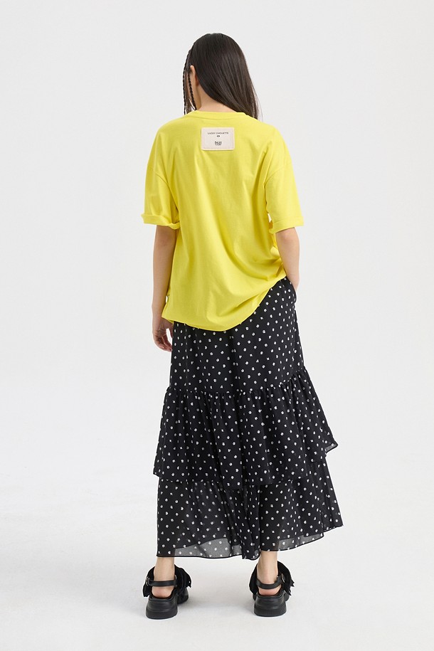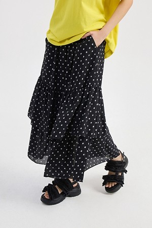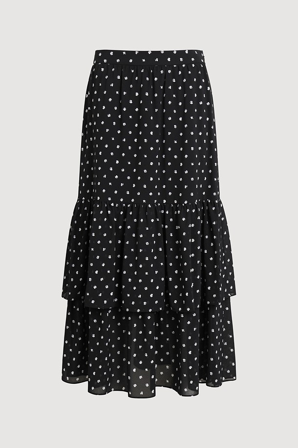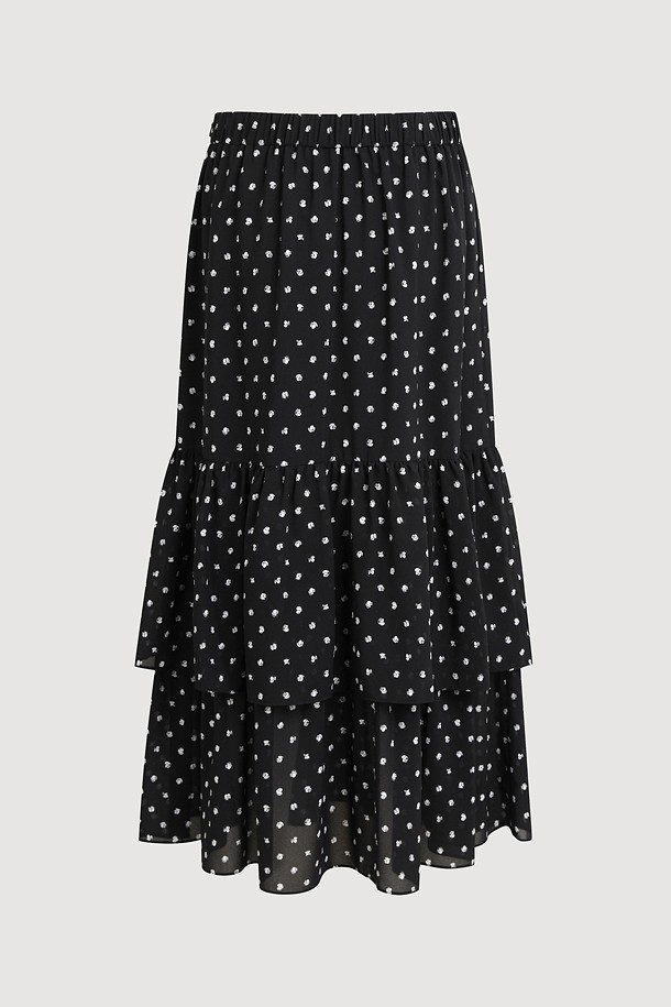 [FELIX X LUCKY CHOUETTE] Felix Print Back banding Long Skirt (black)