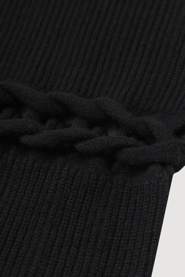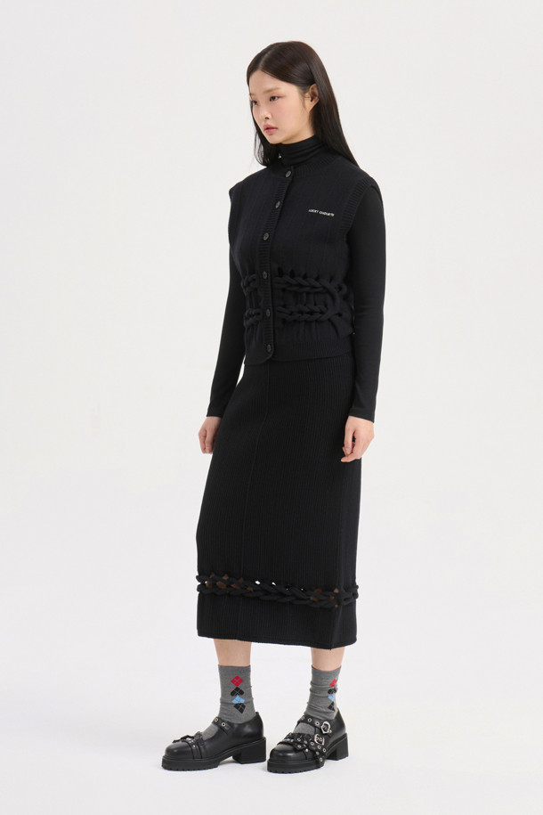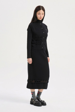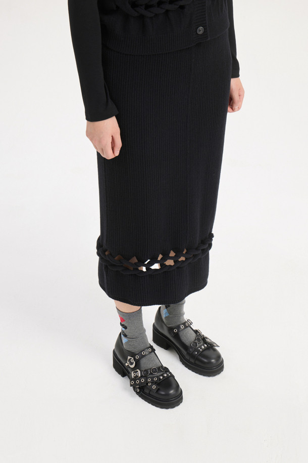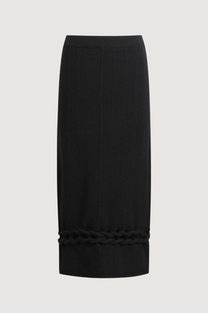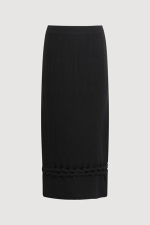 Solid Twist Embroidery Knit Skirt (black)