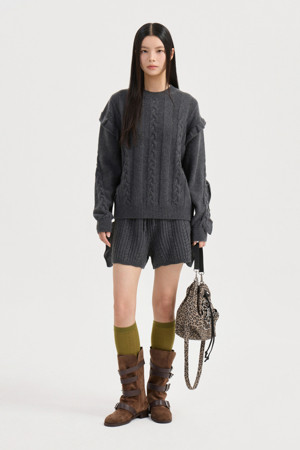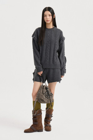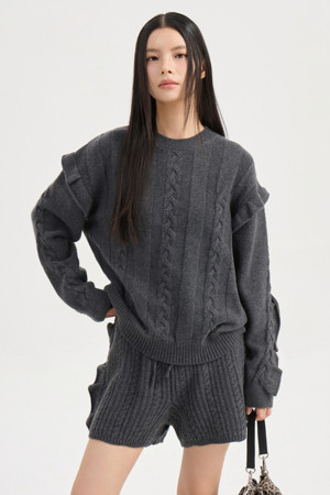 Entry Side Frill Knit Shorts (melange grey)