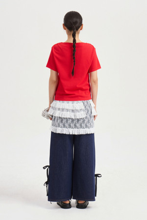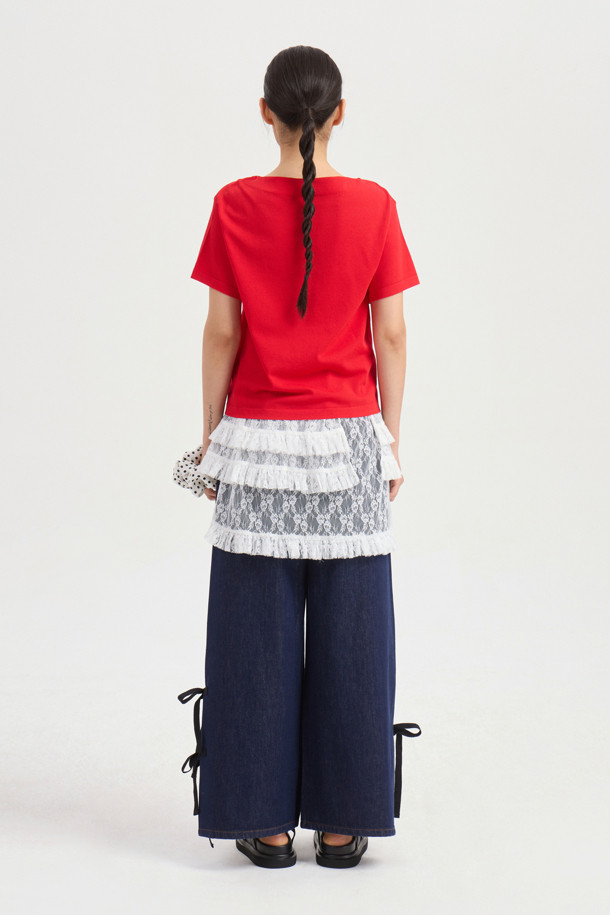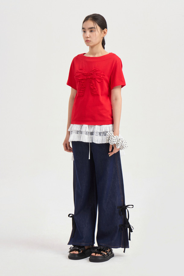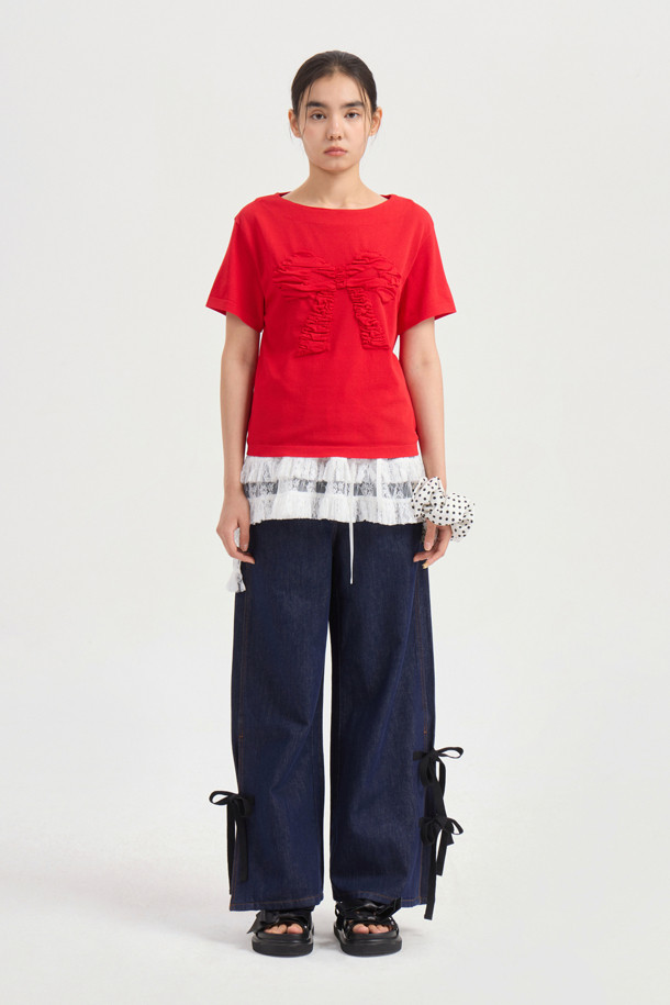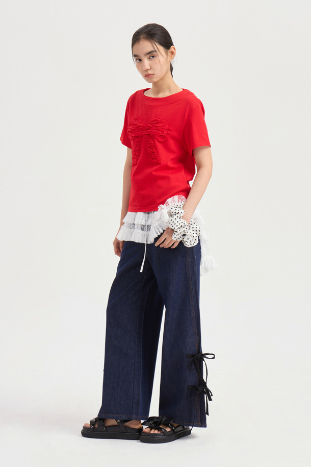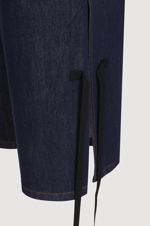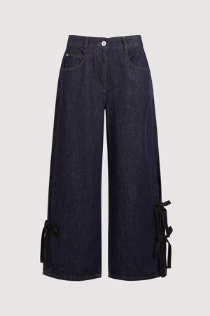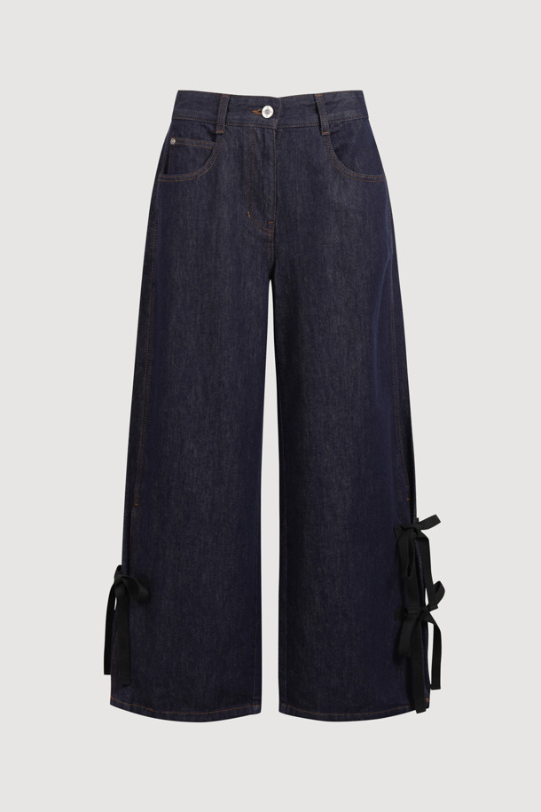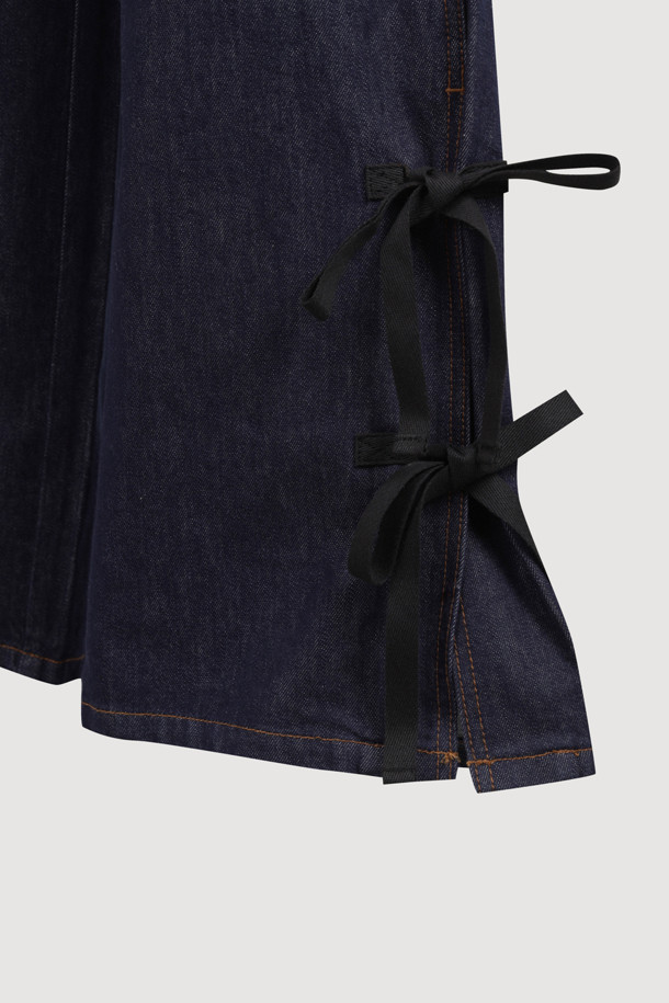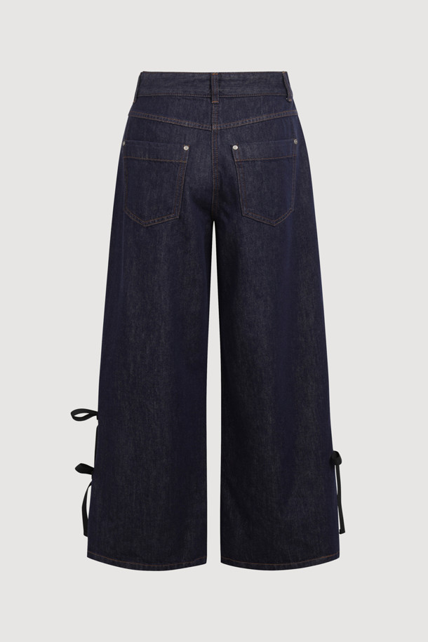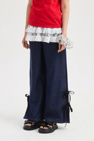 [Re-Order] Side Ribbon Wide Denim Pants (blue)