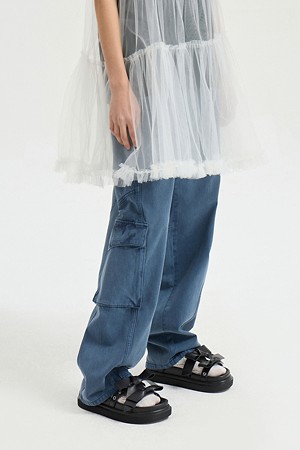 Pocket Point Dying Denim Pants (blue)