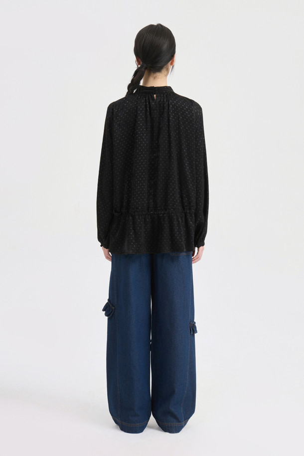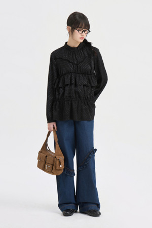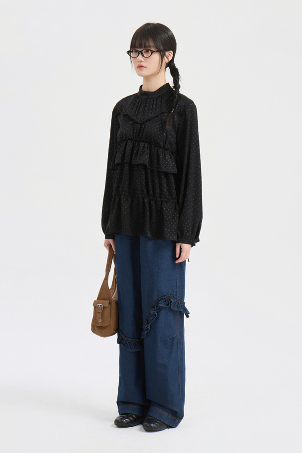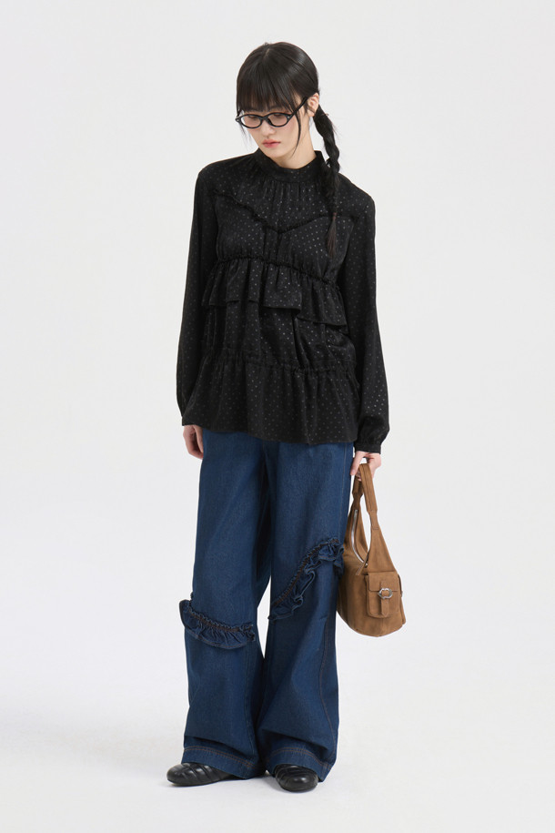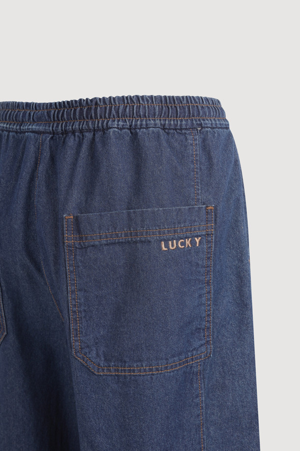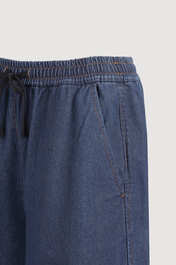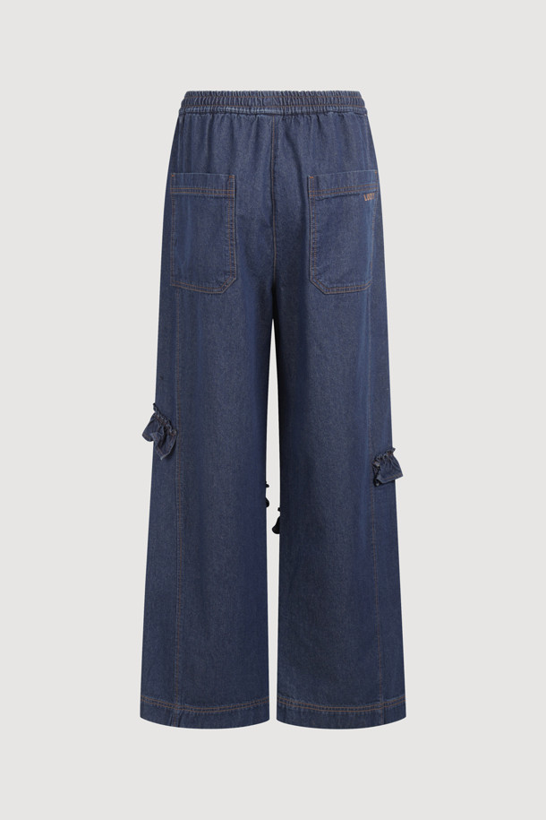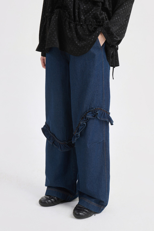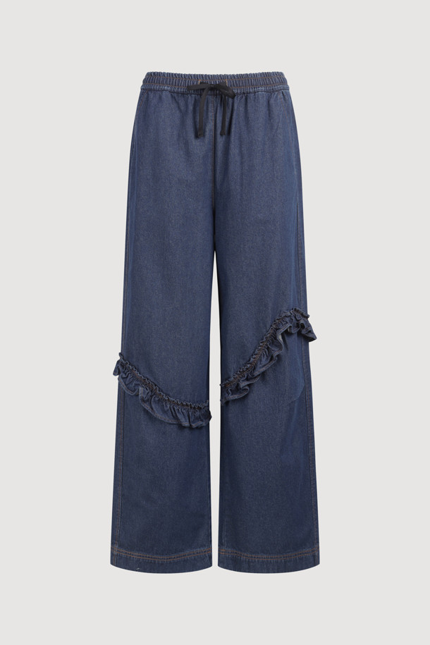 Frill Point Banding Denim Pants (dark blue)