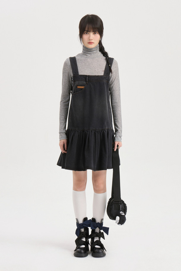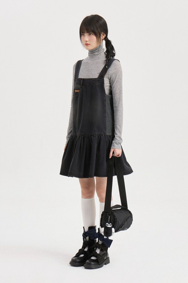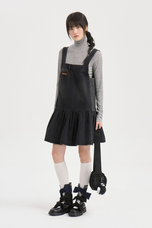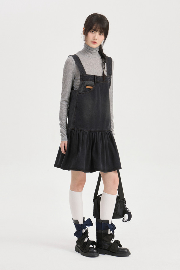 Stripe Mix Denim Mini Dress (dark grey)
