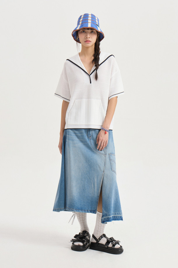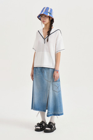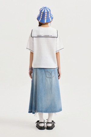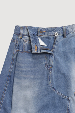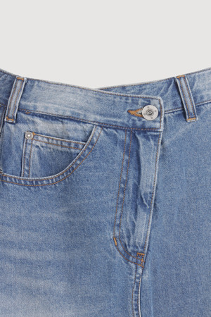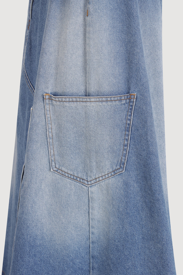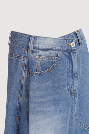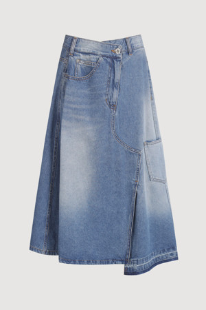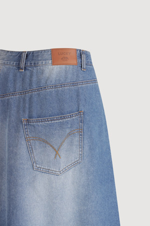 Oblique Incision Denim Long Skirt (blue)