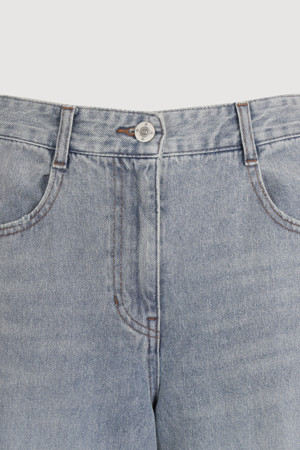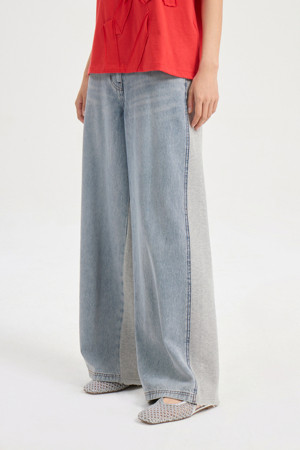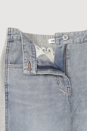 [Re-Order] Jersey Mix Back Banding Denim Pants (blue)