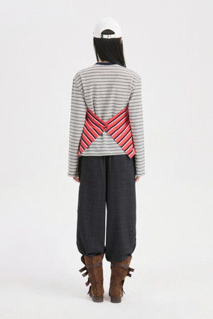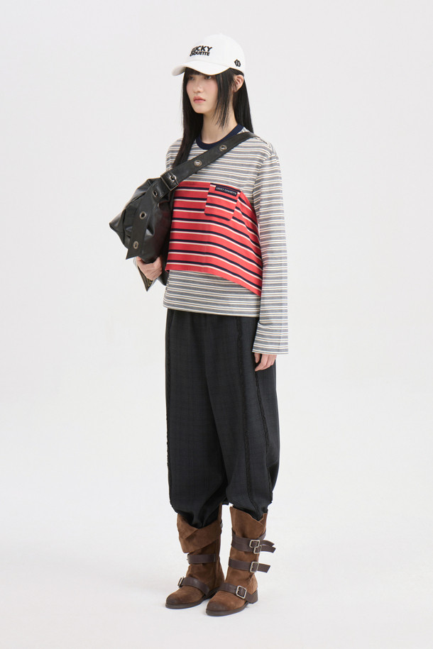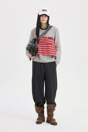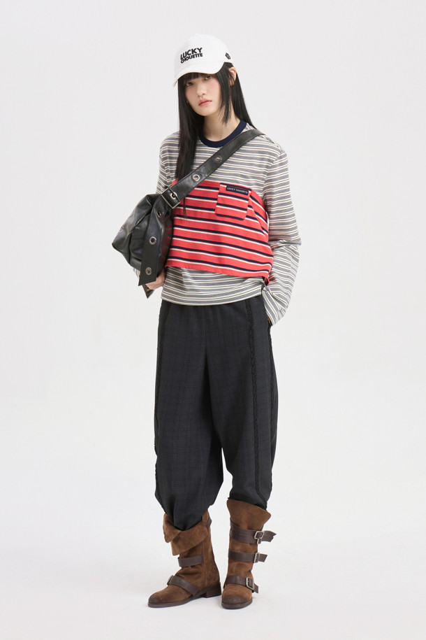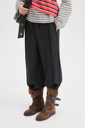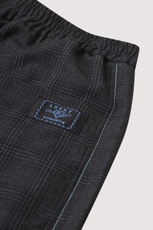 Frill Point Check Banding Pants (dark grey)