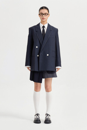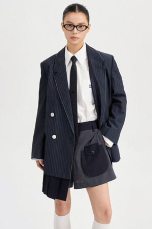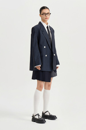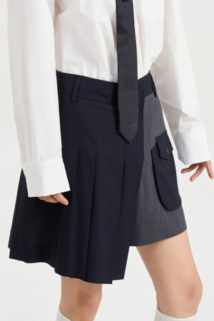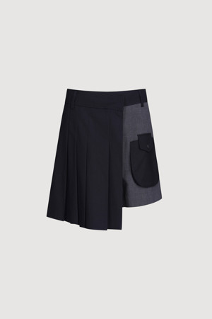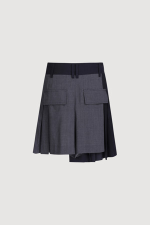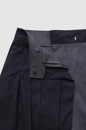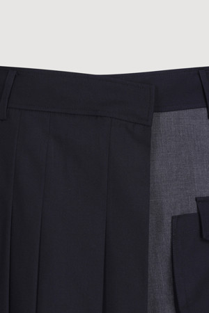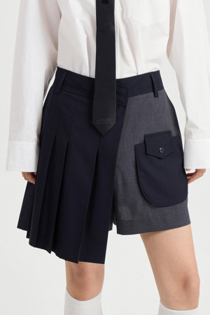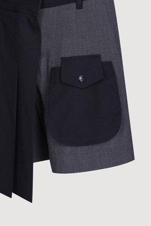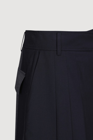 Material Mix Pleats Shorts (dark navy)