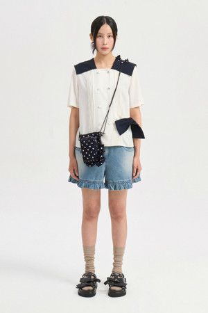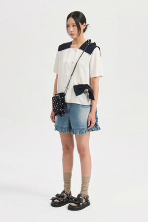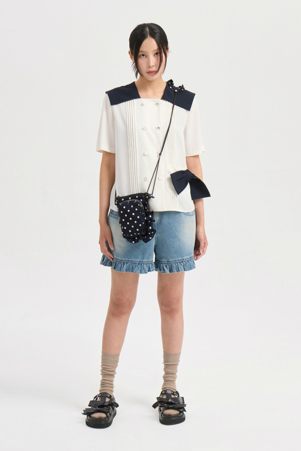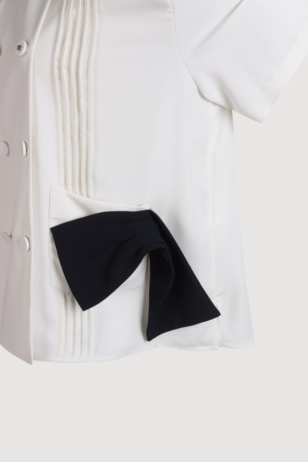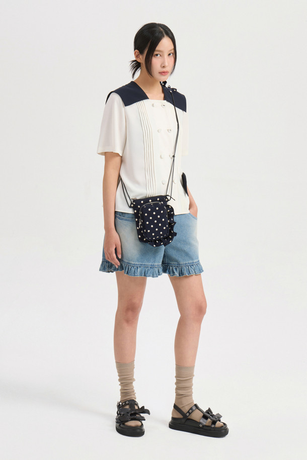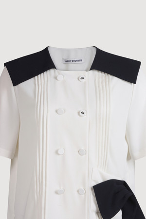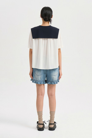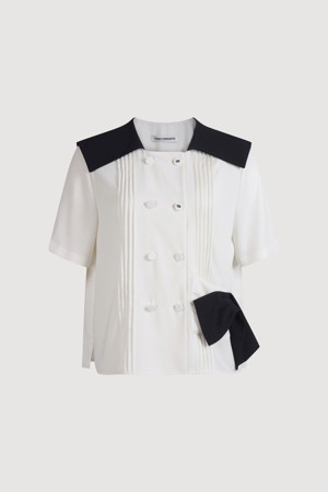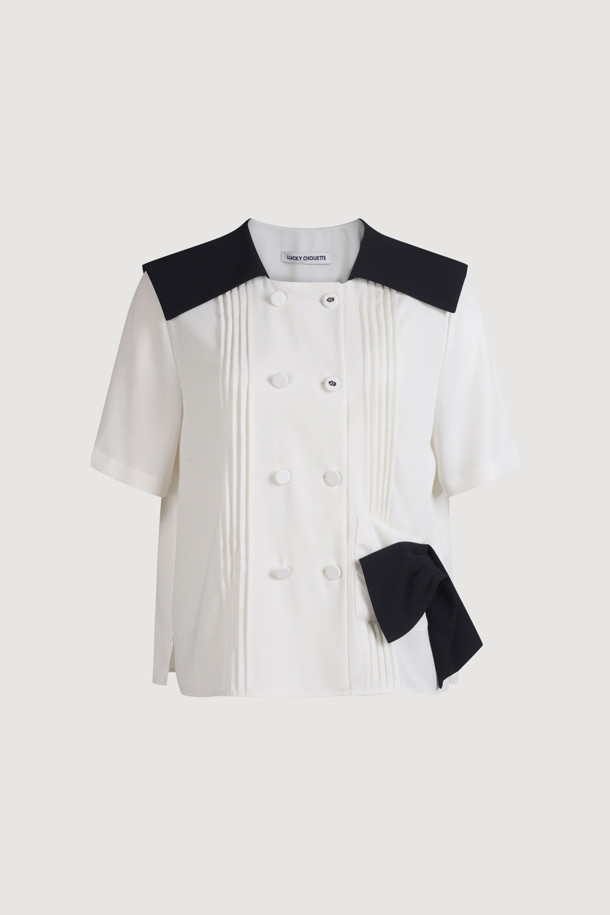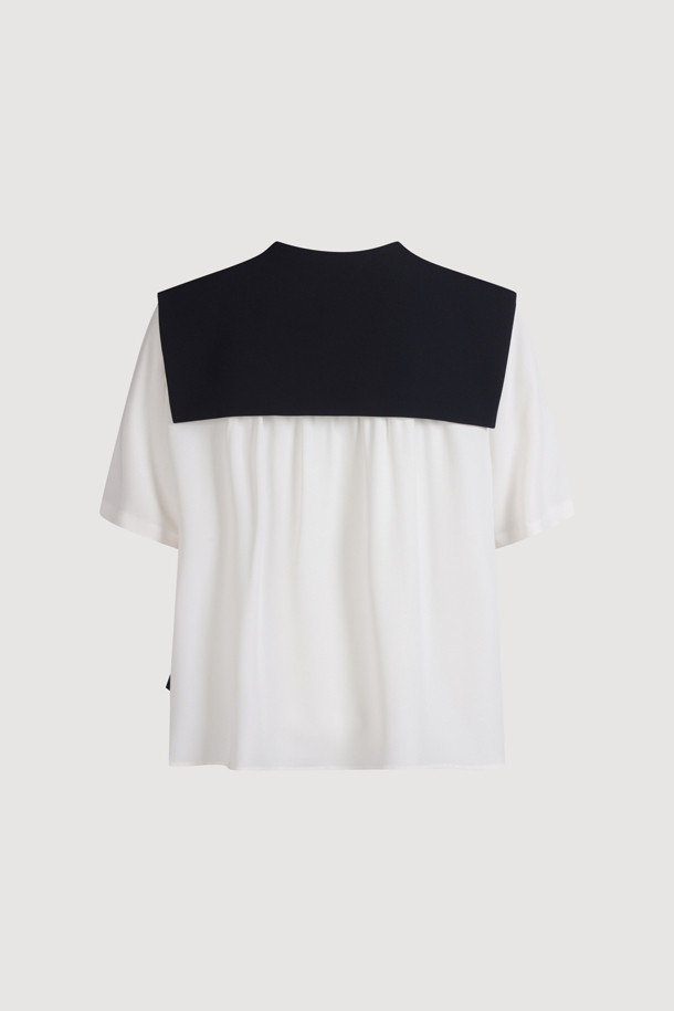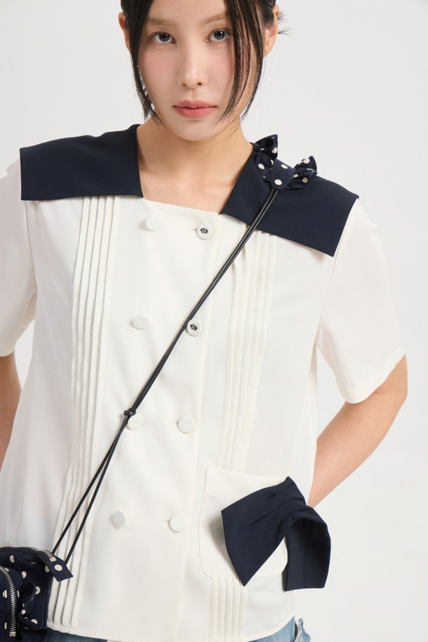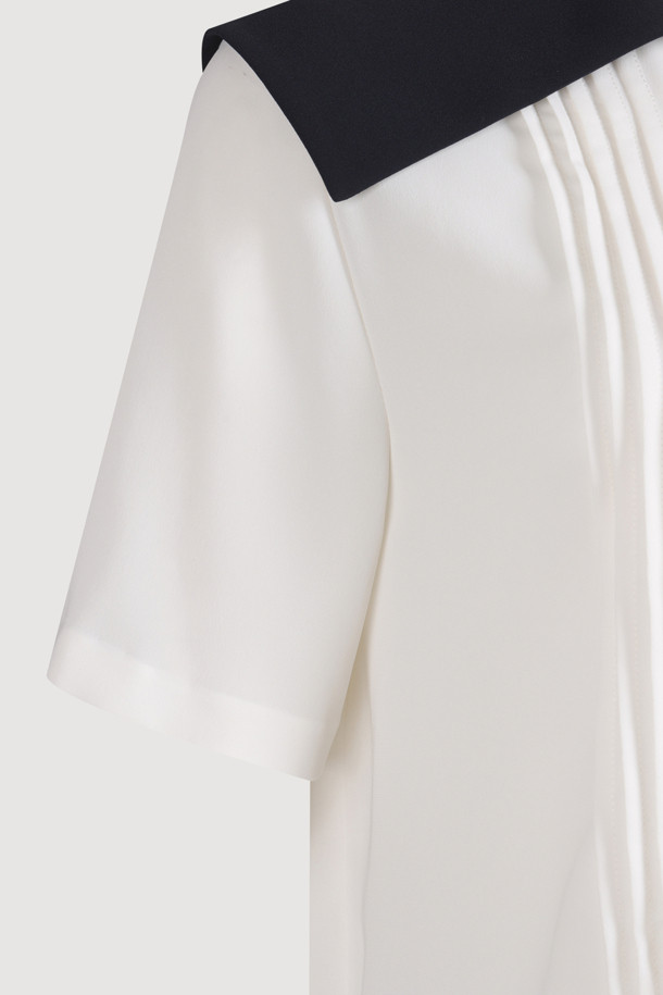 Colored Sailor Collar Pleats Blouse (ivory)