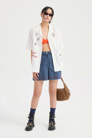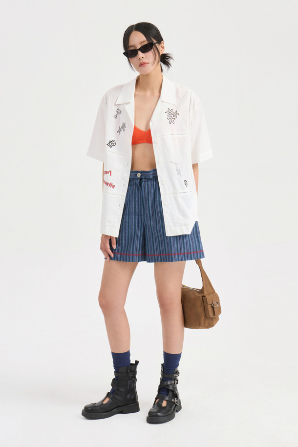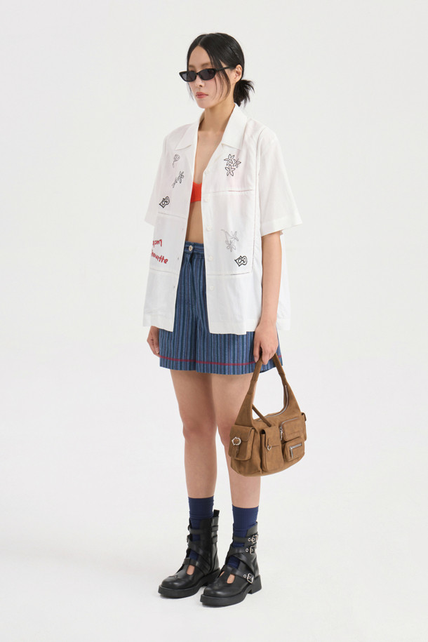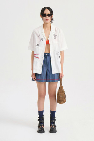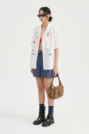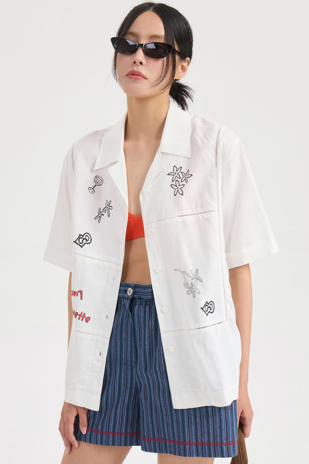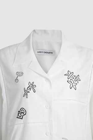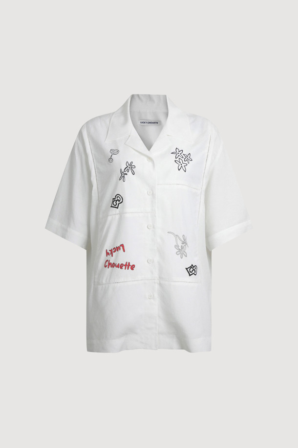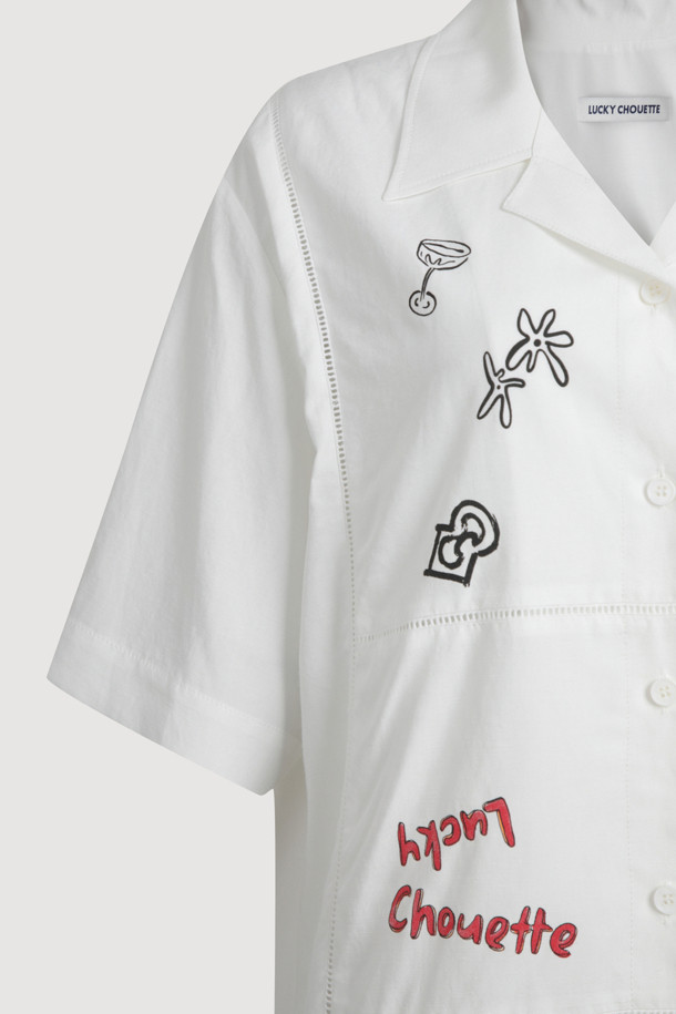 Front Print Point Shirt Type Blouse (white)