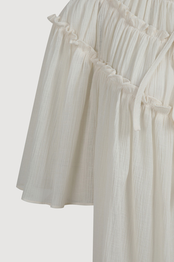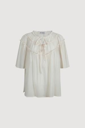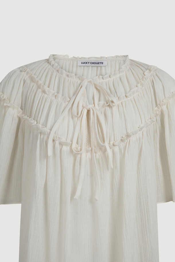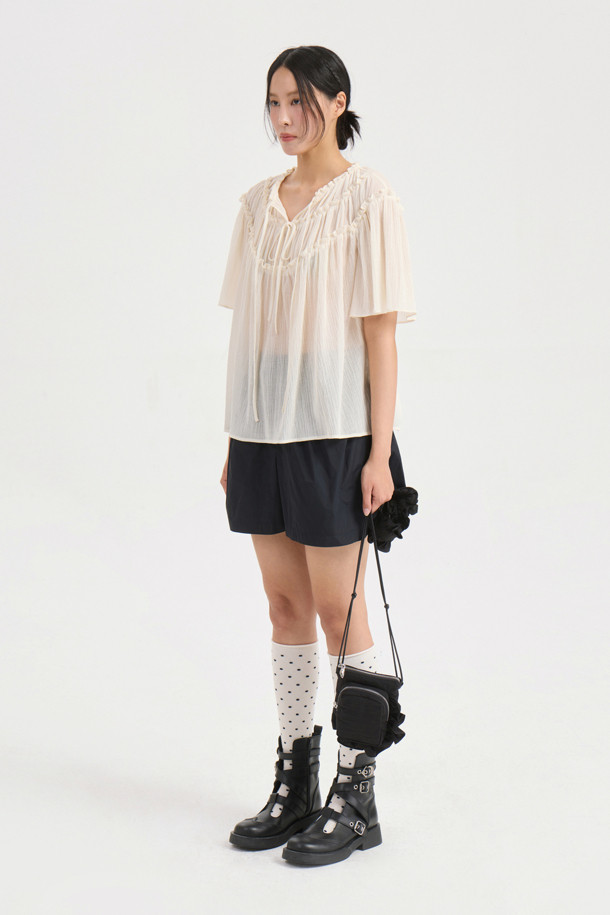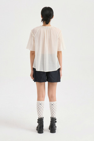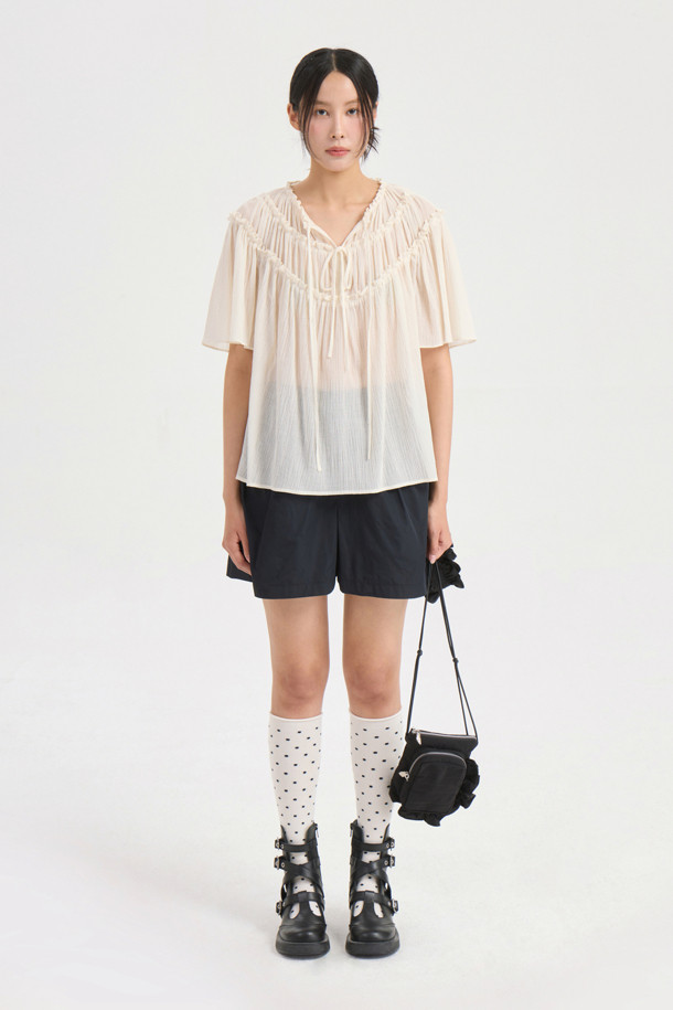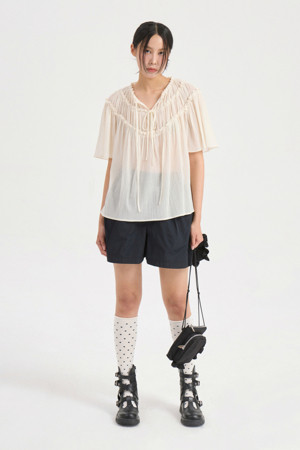 String Shirring Half Sleeve Blouse (ivory)