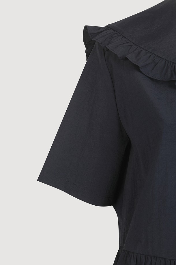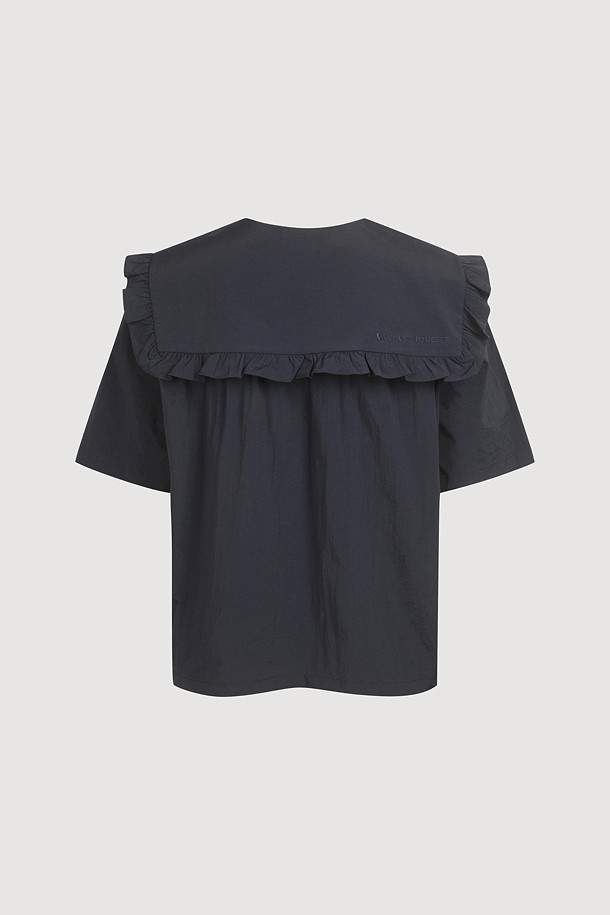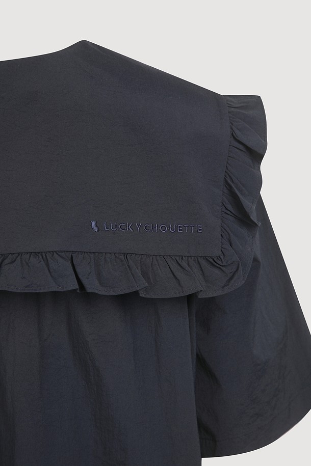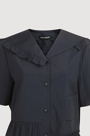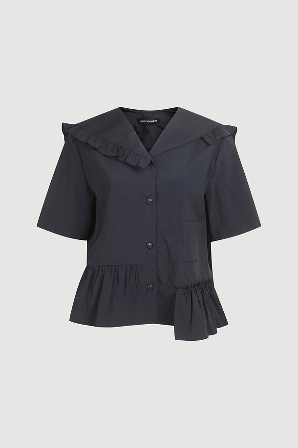 Ruffle Point Collar Blouse (dark navy)