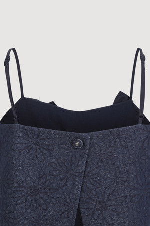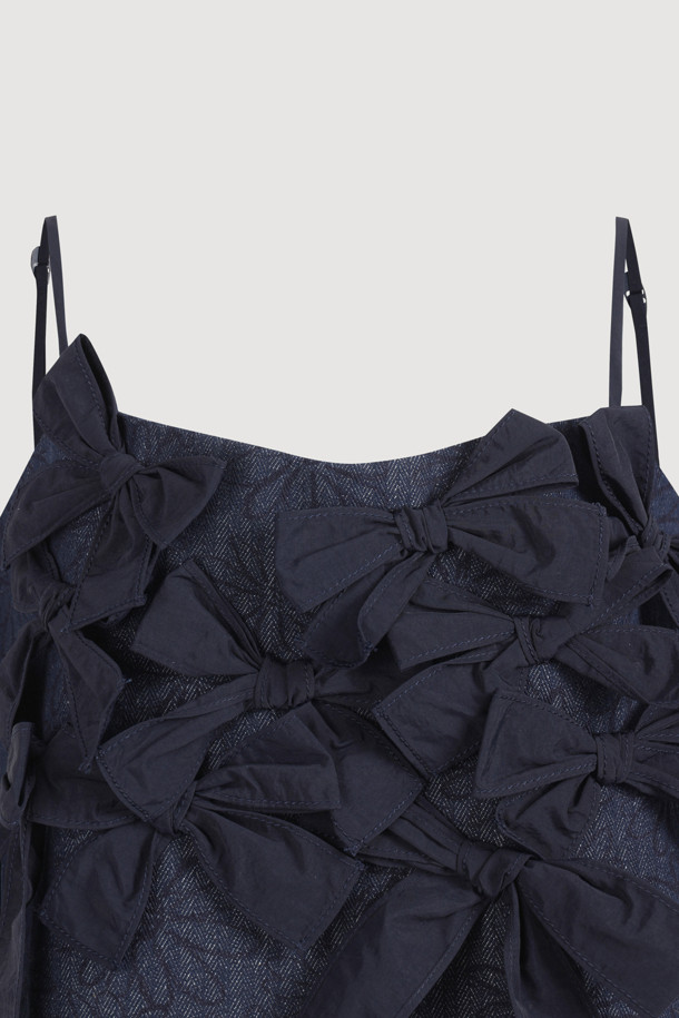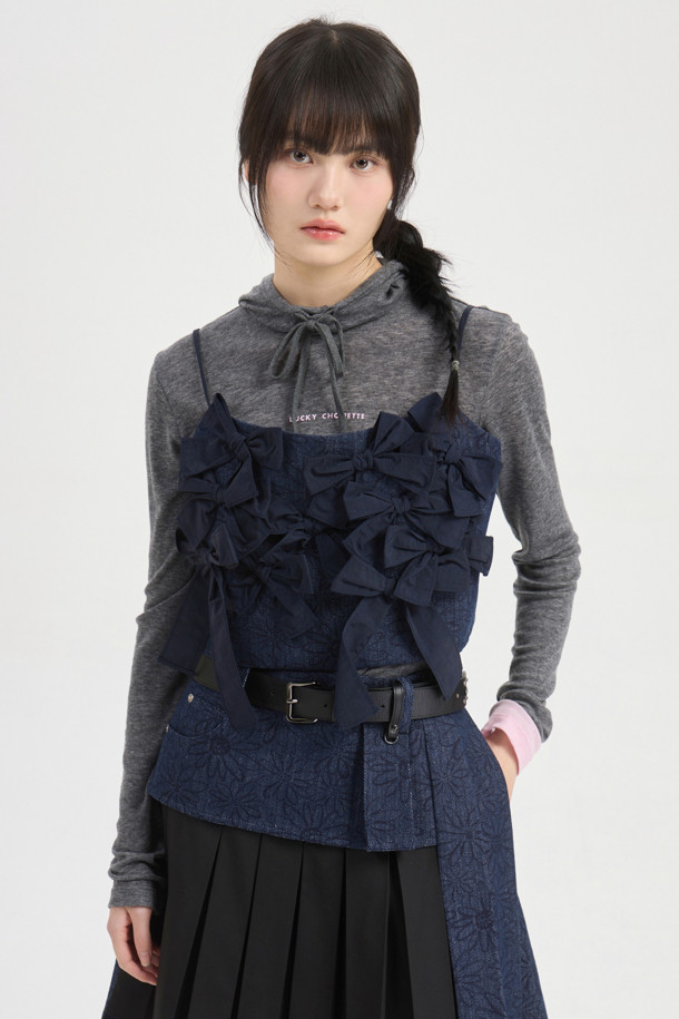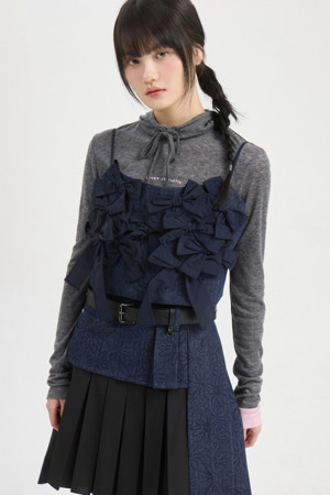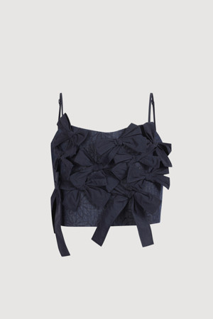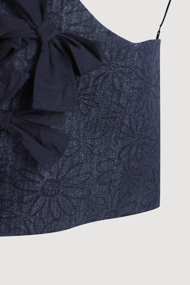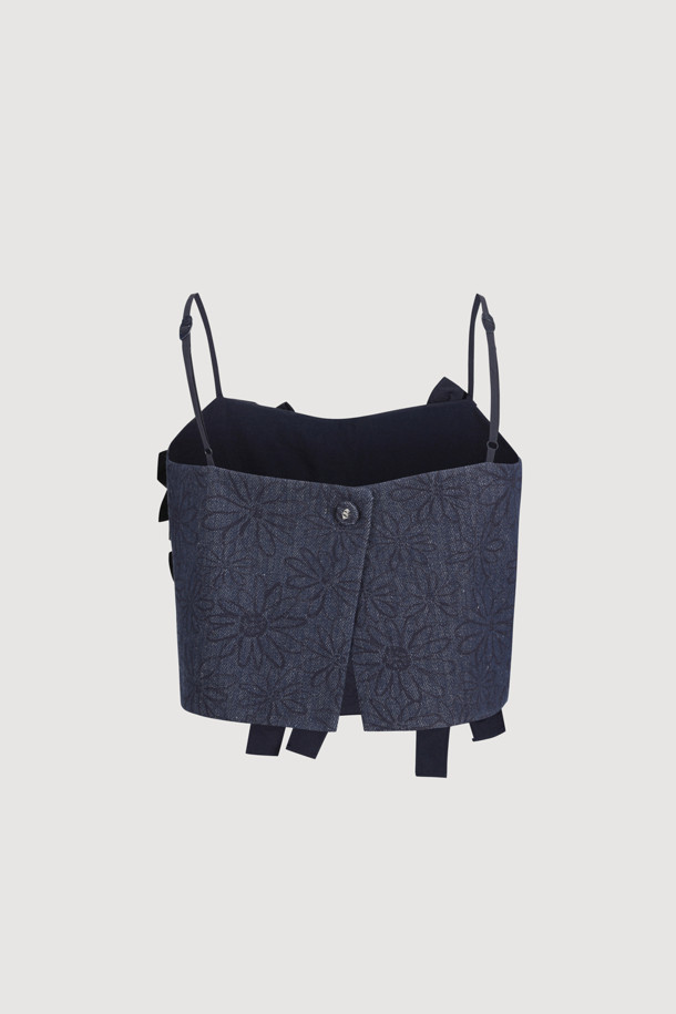 Ribbon Point Flower Top Blouse (dark navy)