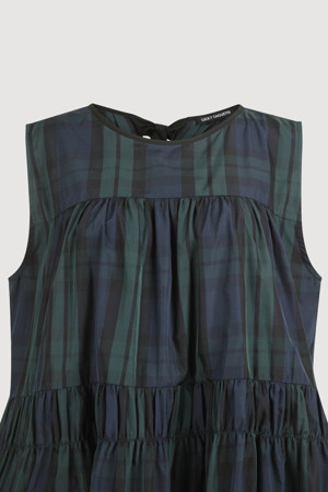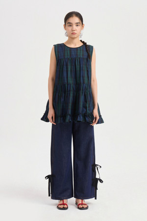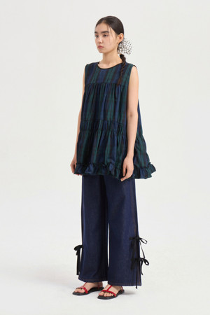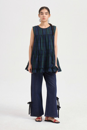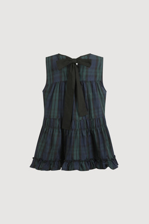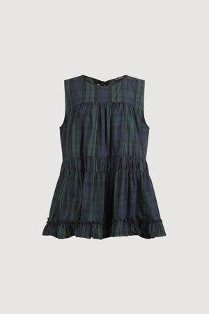 [Re-Order] Sleeveless Check Shirring Blouse (green)