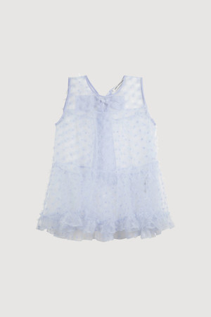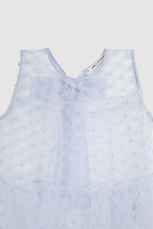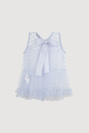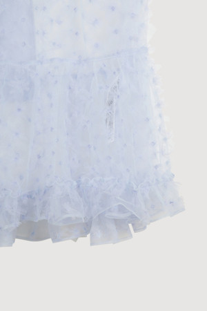 Sleeveless Flower Embroidery Shirring Blouse (light blue)