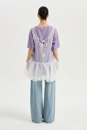Back Ribbon Volume Sheer Top Blouse (ivory)