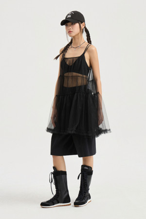 [Re-Order] Shirring Mesh Top Blouse (black)