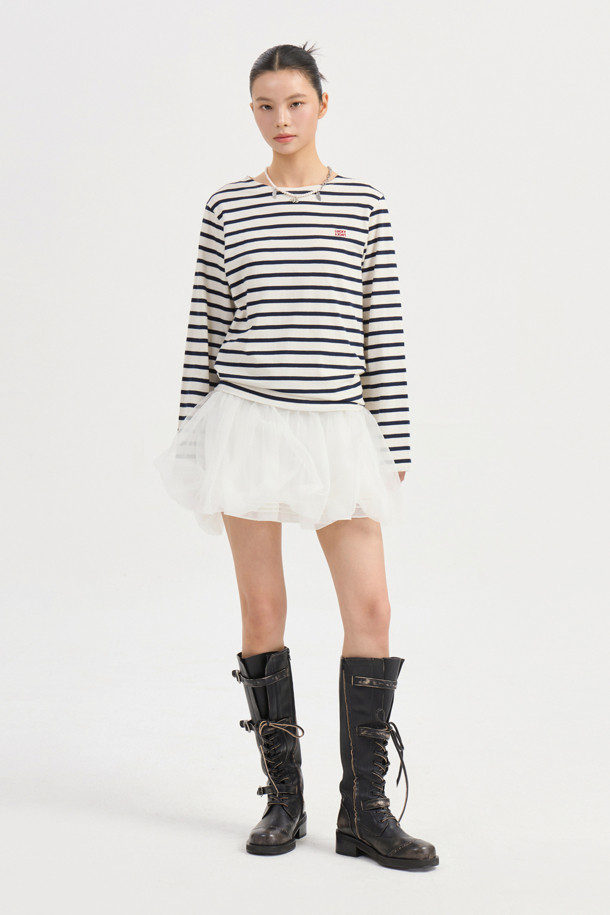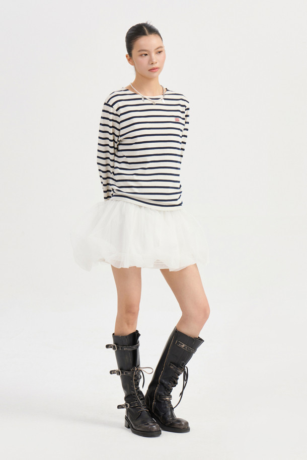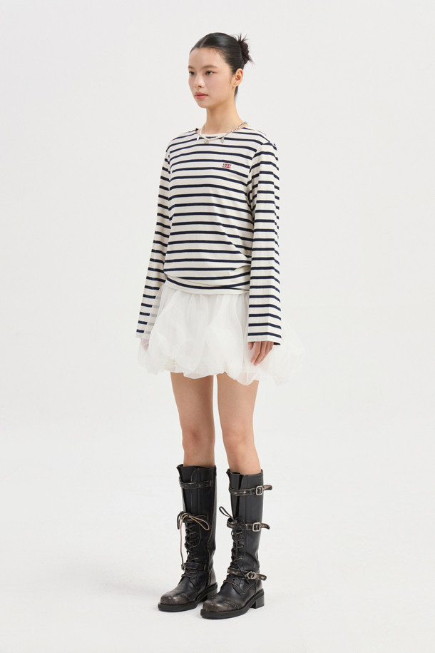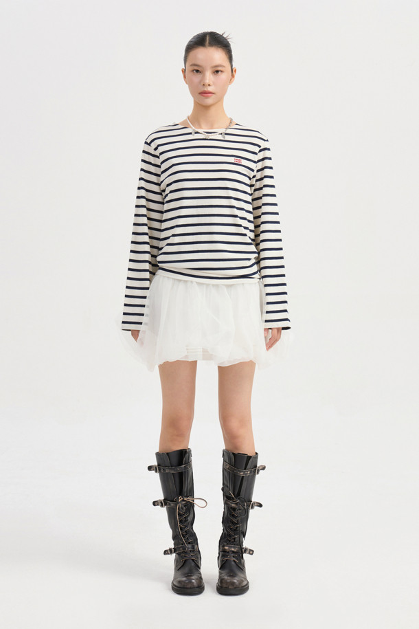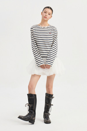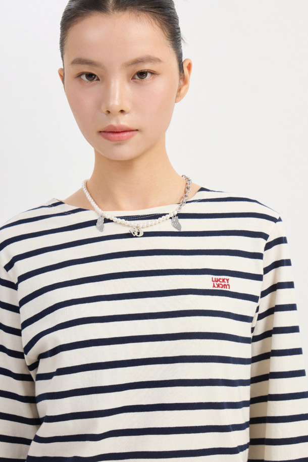 Stripe Basic Fit Long Sleeve T-shirt (ivory)