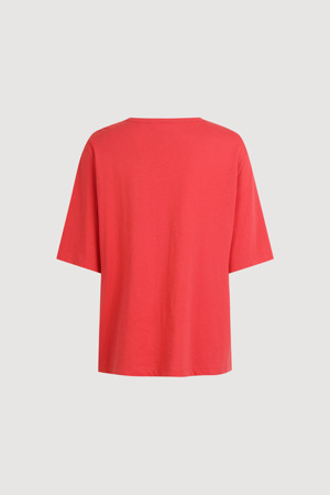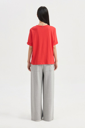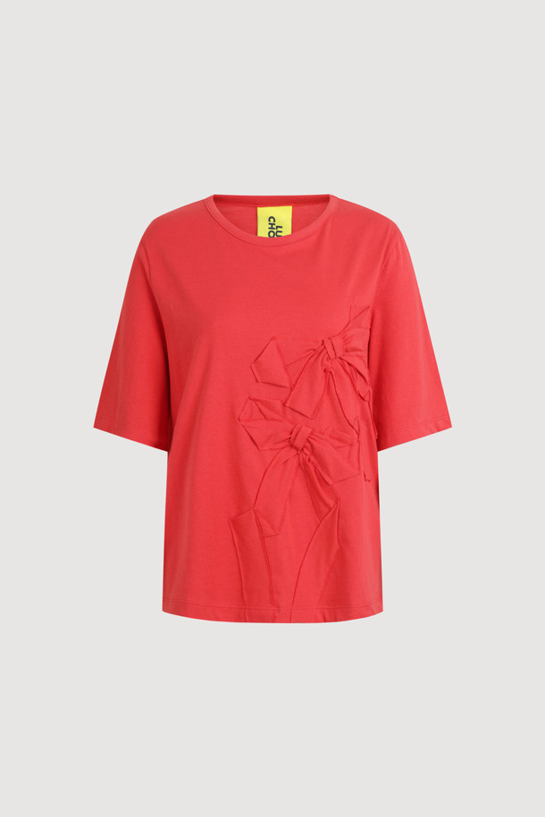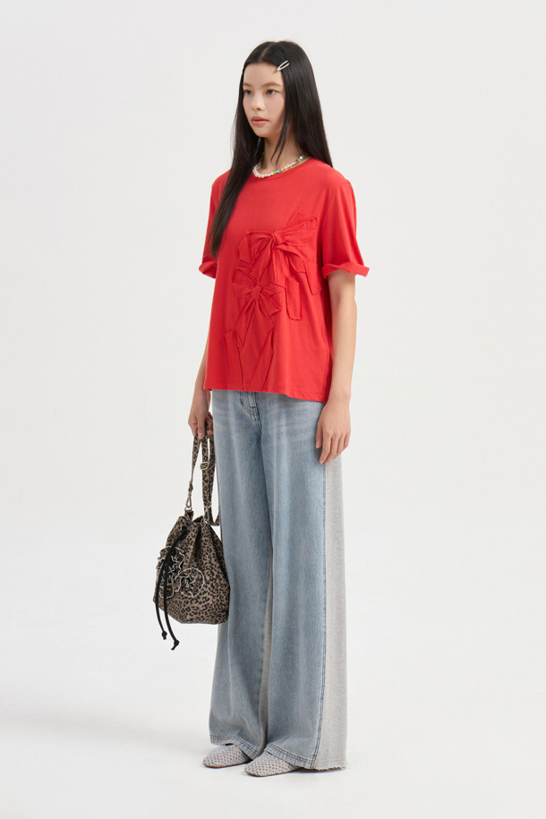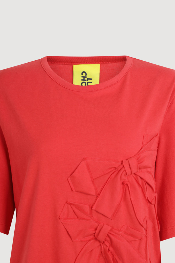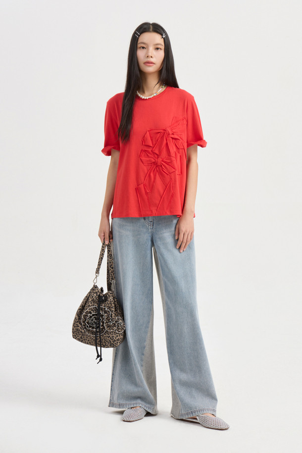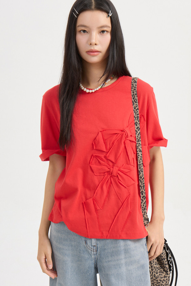 Ribbon Embroidery Basic Fit Half Sleeve T-shirt (red)