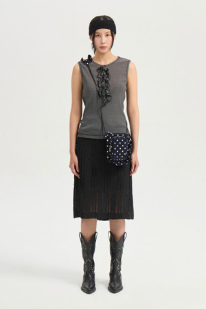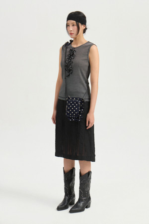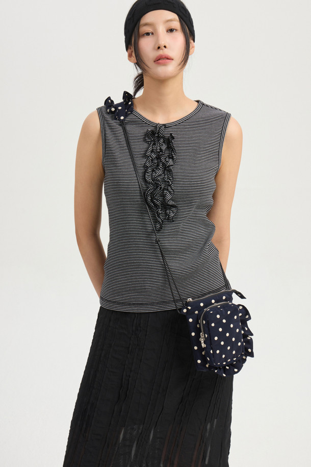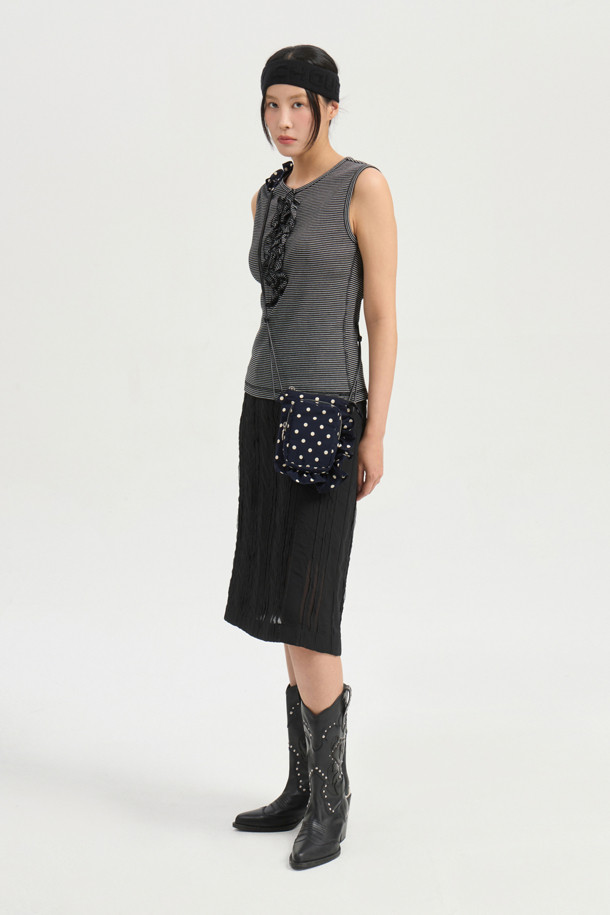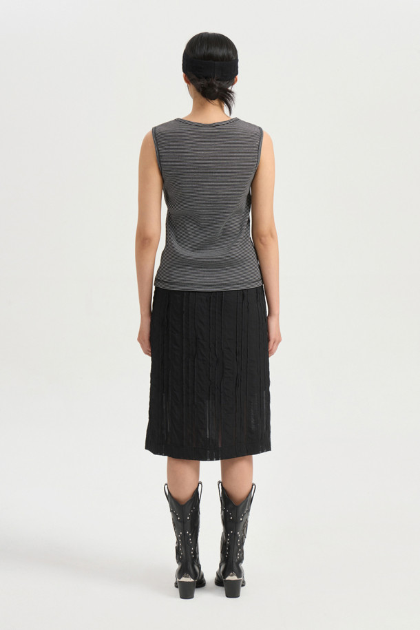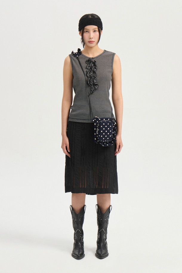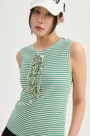 Frill Point Stripe Sleeveless T-shirt (black)