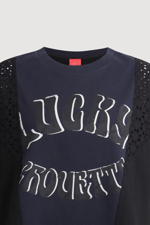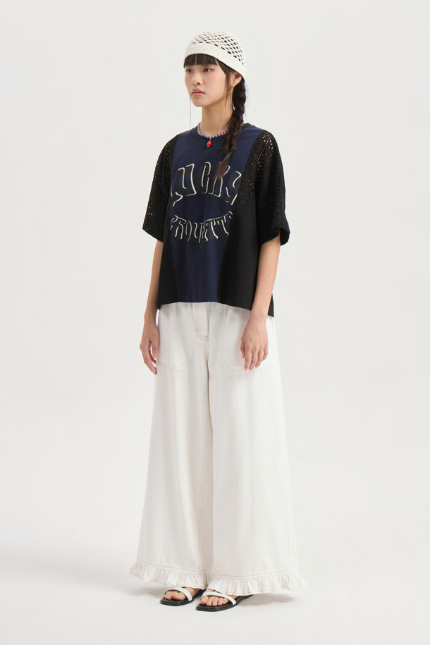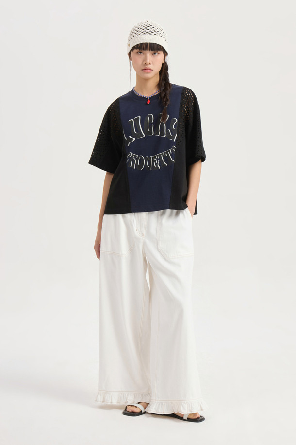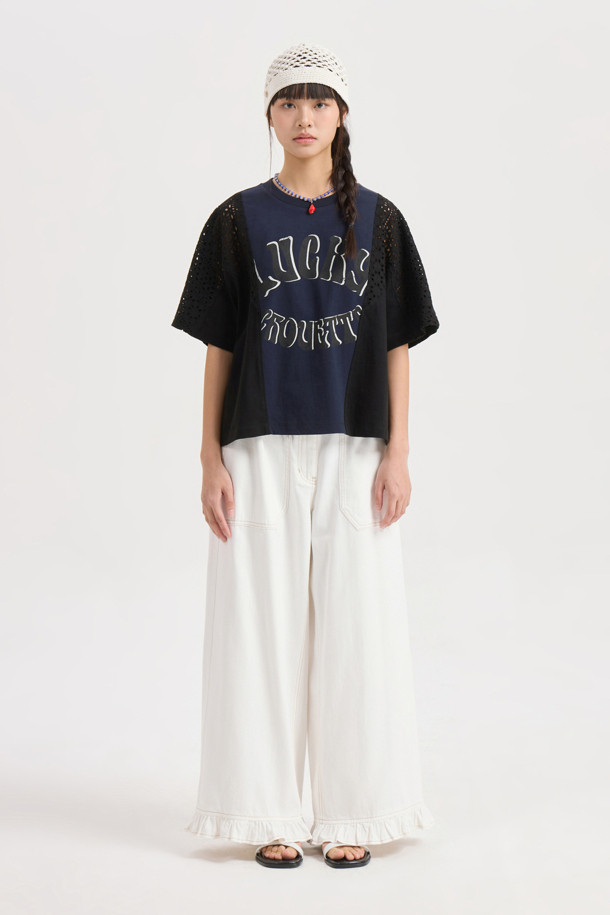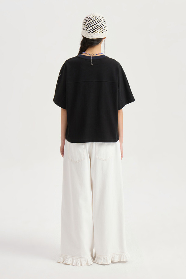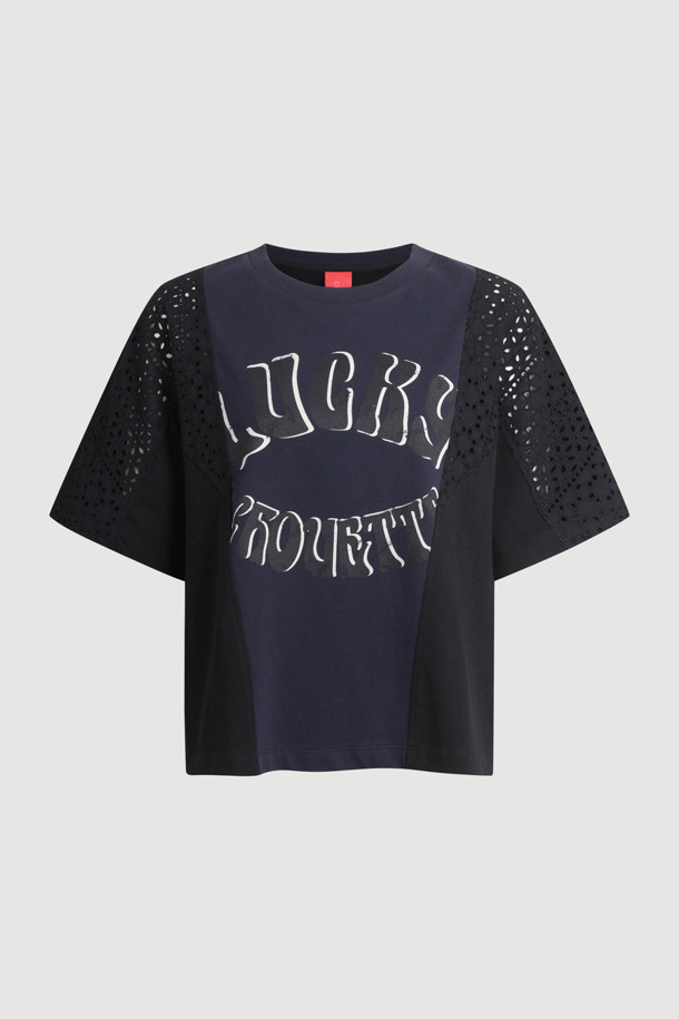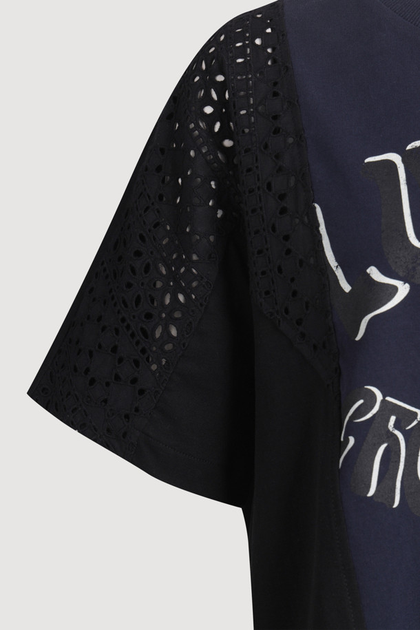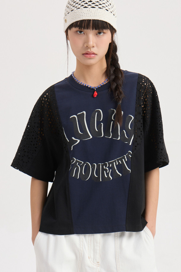 Eyelet Color Scheme Half Sleeve T-shirt (dark navy)
