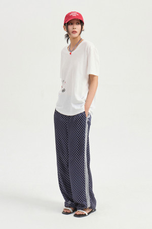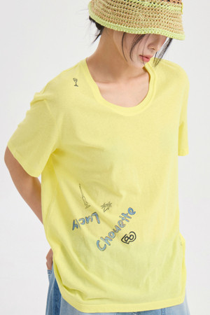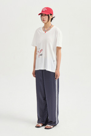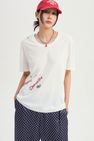 Tattoo Print Loose Fit U Neck Half Sleeve T-shirt (white)