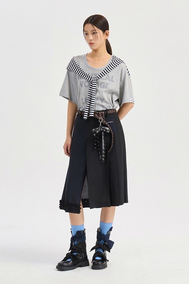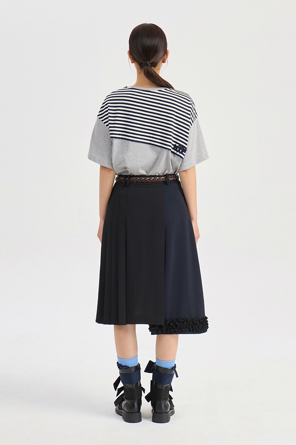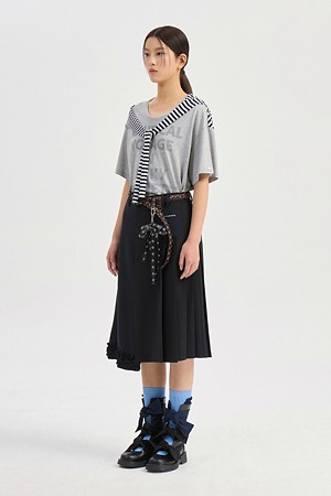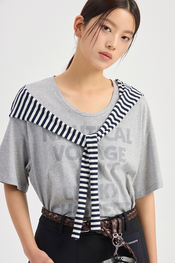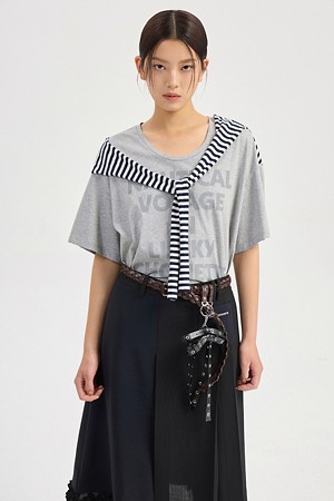 Stripe Color Blend Loose Fit Short Sleeve T-Shirt (melange grey)