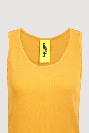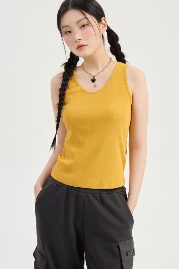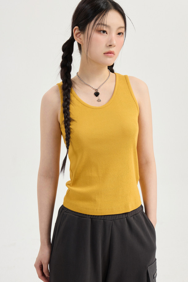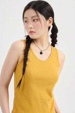 Back embroidery sleeveless top (mustard)