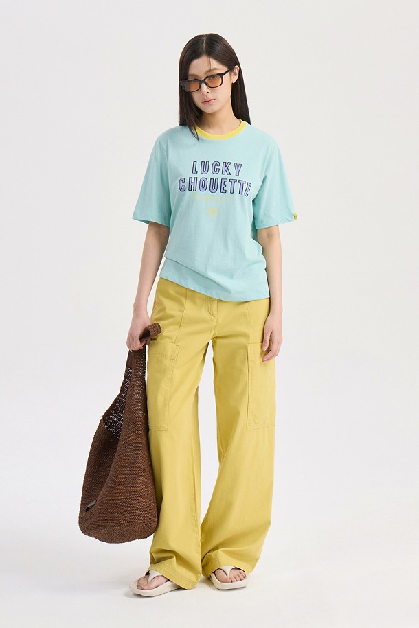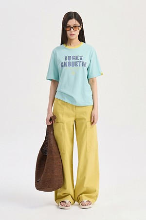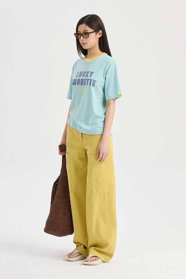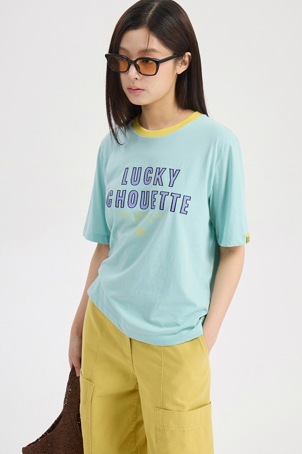Neck Color Block Basic Fit Short Sleeve T-shirt (mint)
