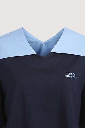 Woven Mix Sailor Short-Sleeve T-Shirt (navy)