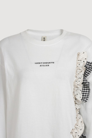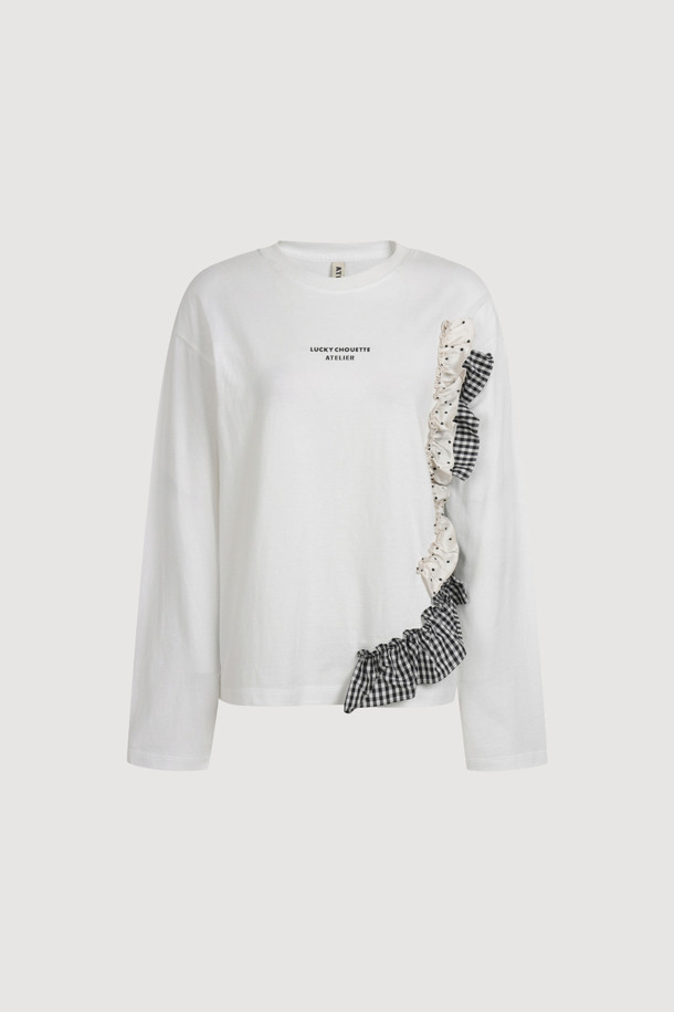 [Atelier] Woven Frill Long Sleeve T-shirts (white)