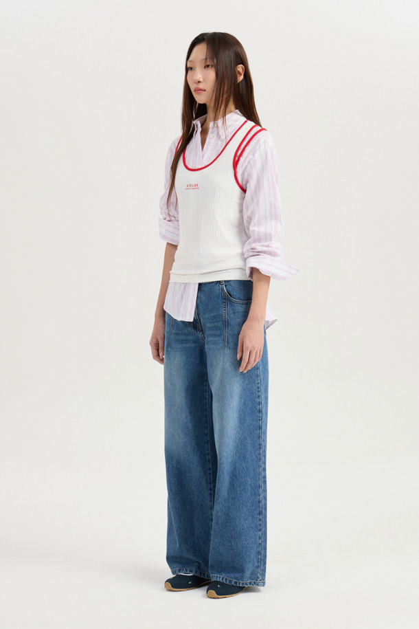 [Atelier] Color Block Point Sleeveless T-shirt (ivory)