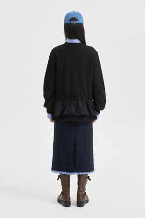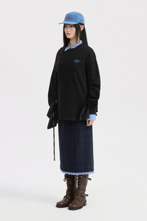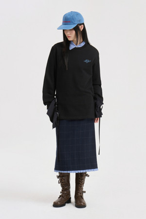 Woven Block Loose Fit Long Sleeve T-shirt (black)