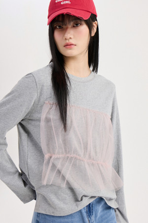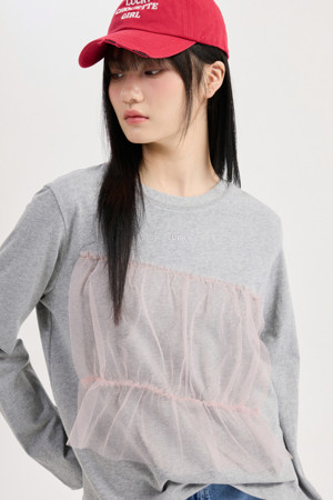 Mesh Color Blend Long Sleeve T-shirt (melange grey)