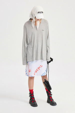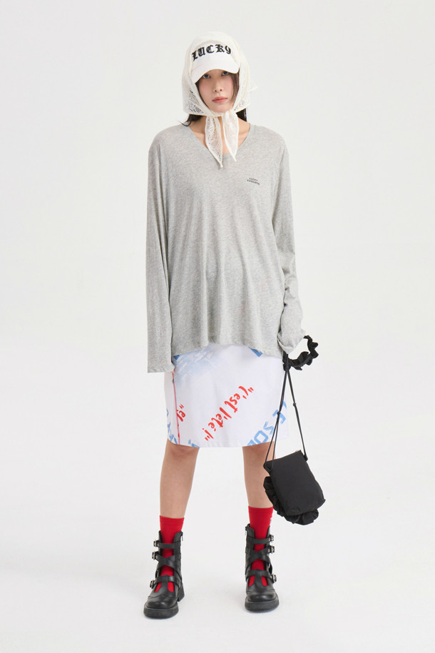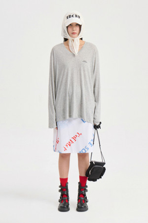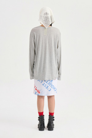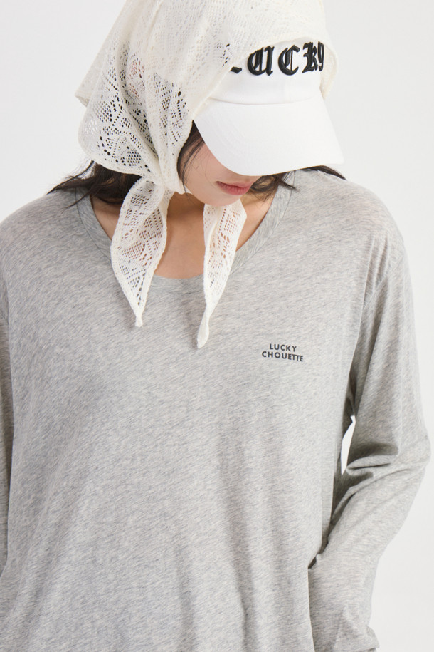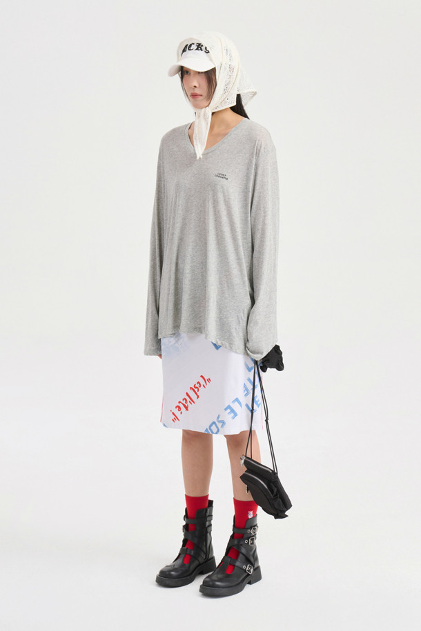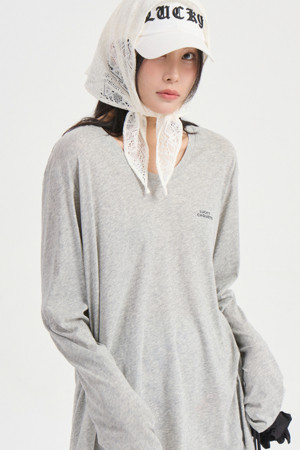 U Neck Loose Fit Long Sleeve T-shirt (melange grey)