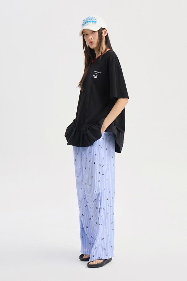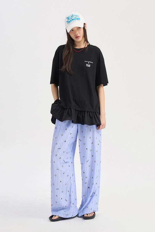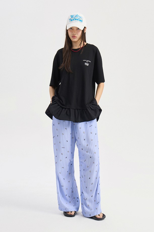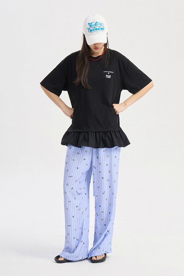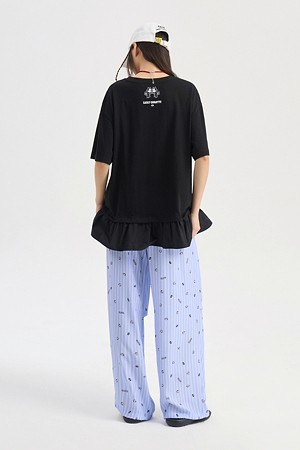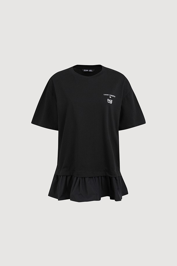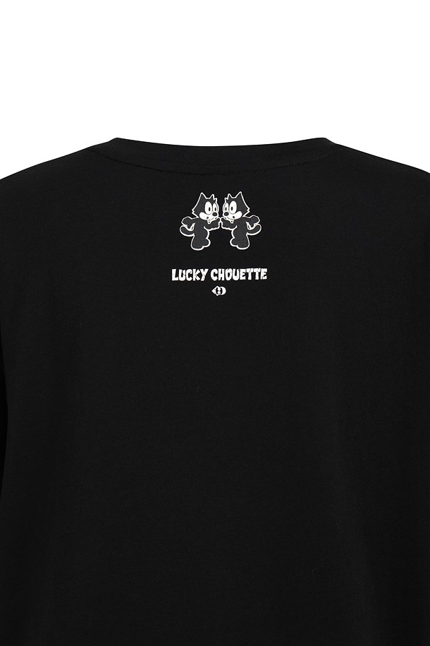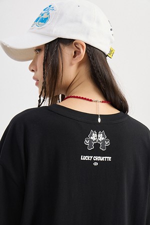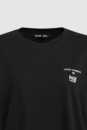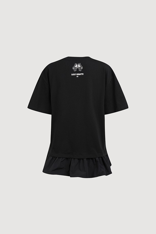 [FELIX X LUCKY CHOUETTE] Woven Mix Short Sleeve T-Shirt (black)