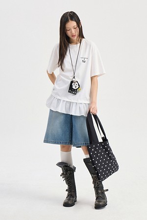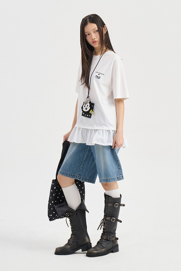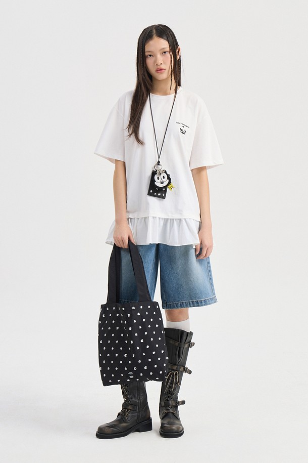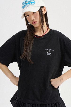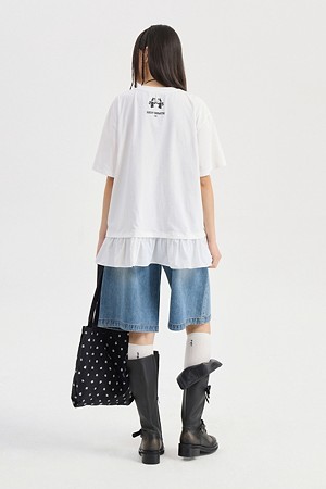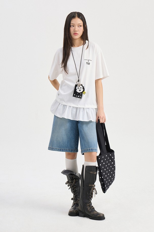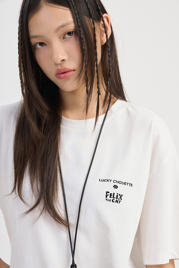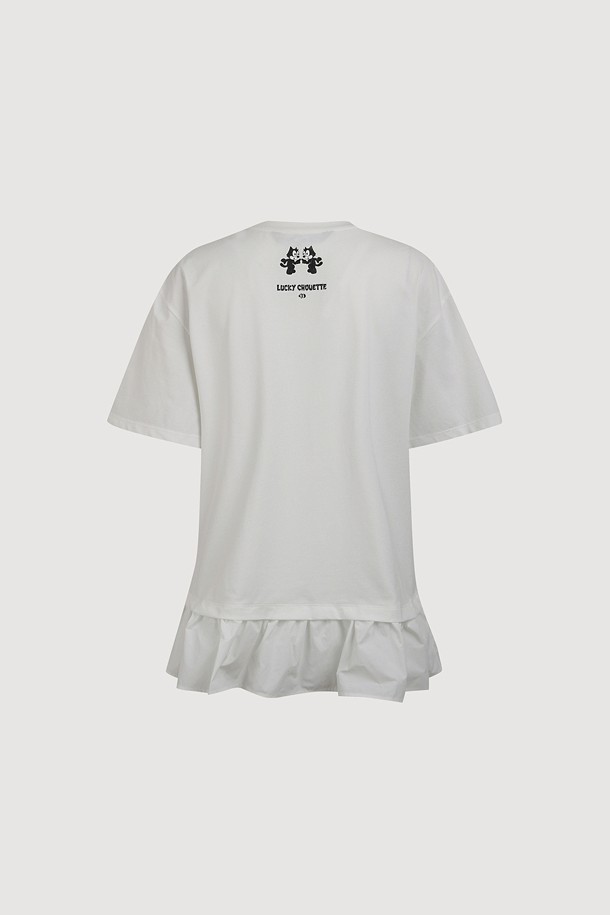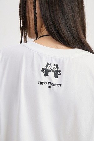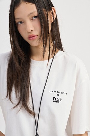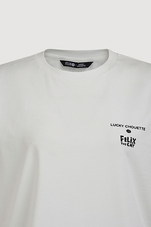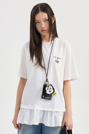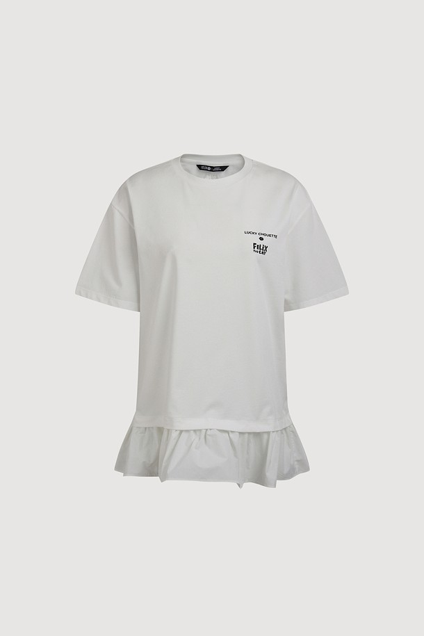 [FELIX X LUCKY CHOUETTE] Woven Mix Short Sleeve T-Shirt (white)