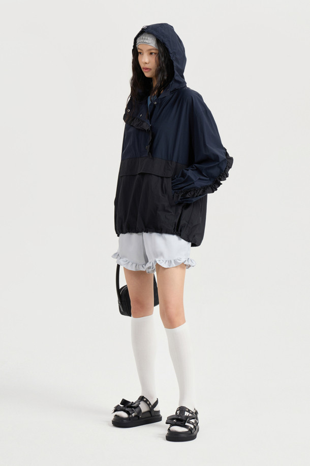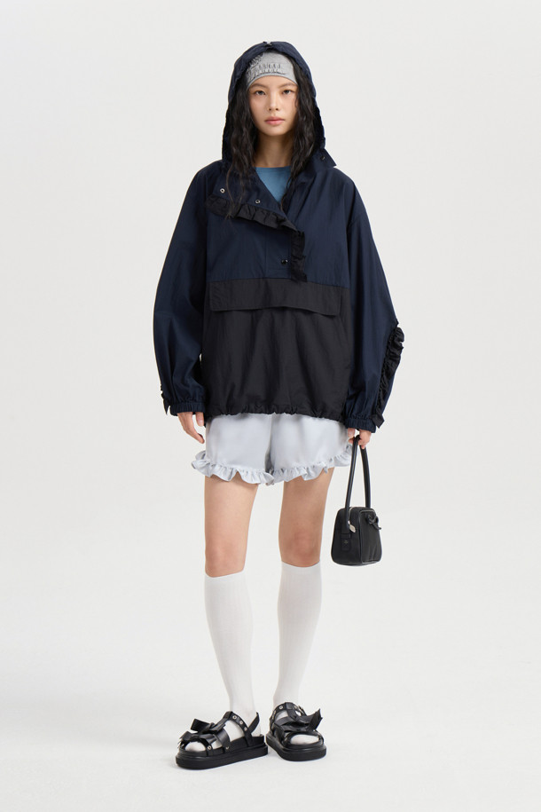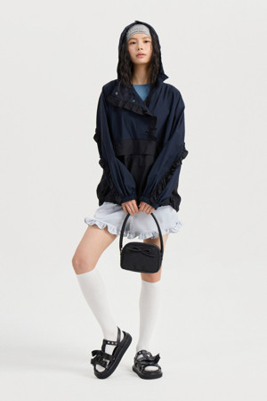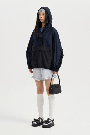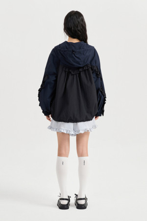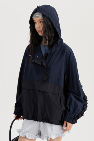 Ruffle Detail Hood Anorak Jumper (dark navy)