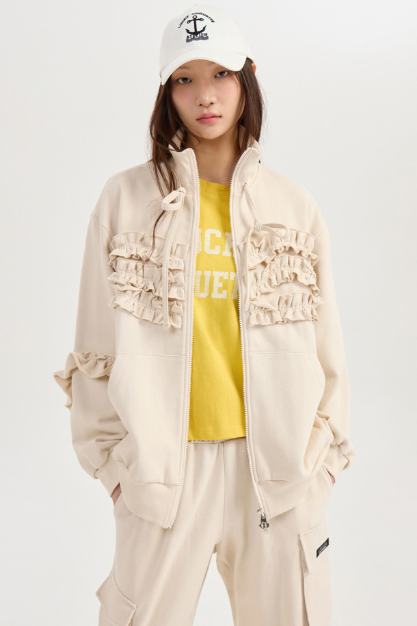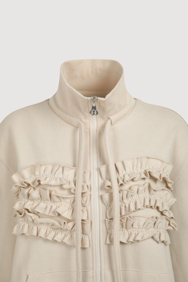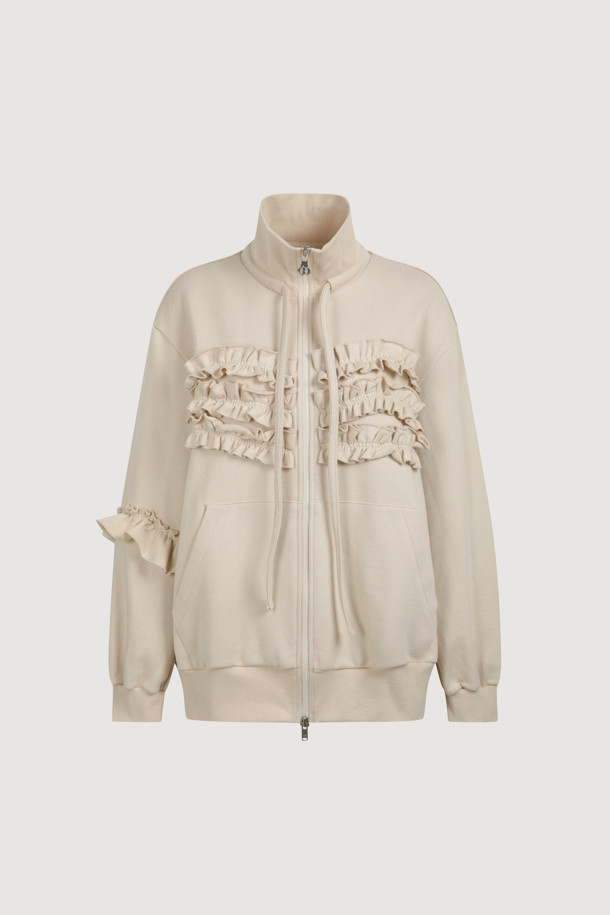 [Atelier] Jersey Frill Zip-up Jumper (light beige)