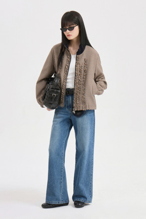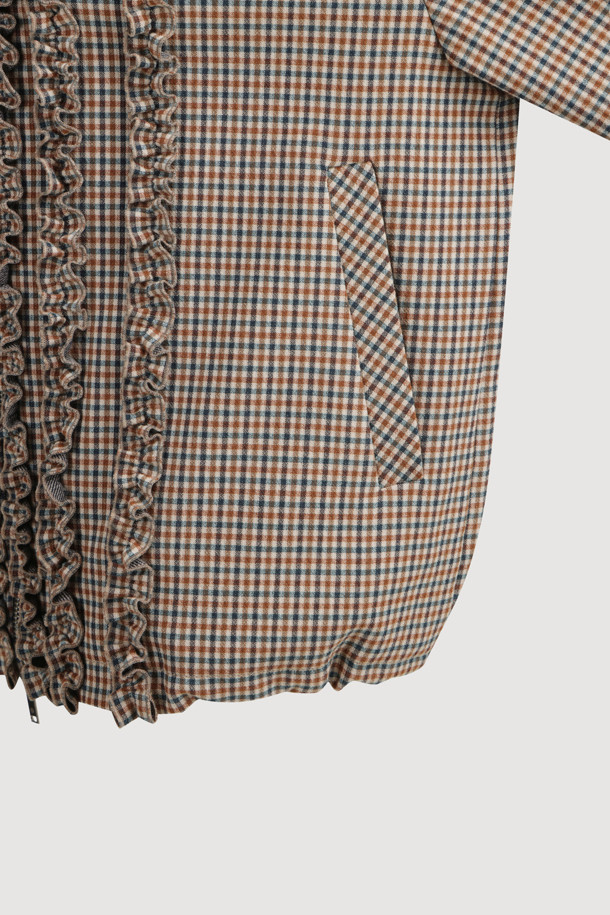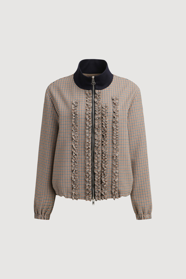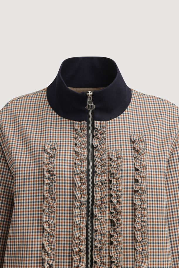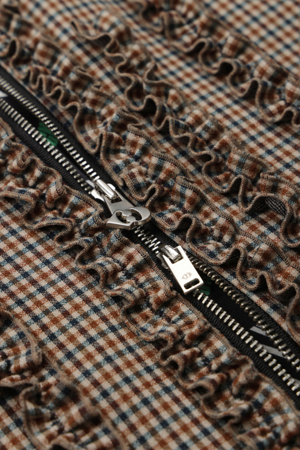 Stripe Frill Zip-up Jumper (brown)