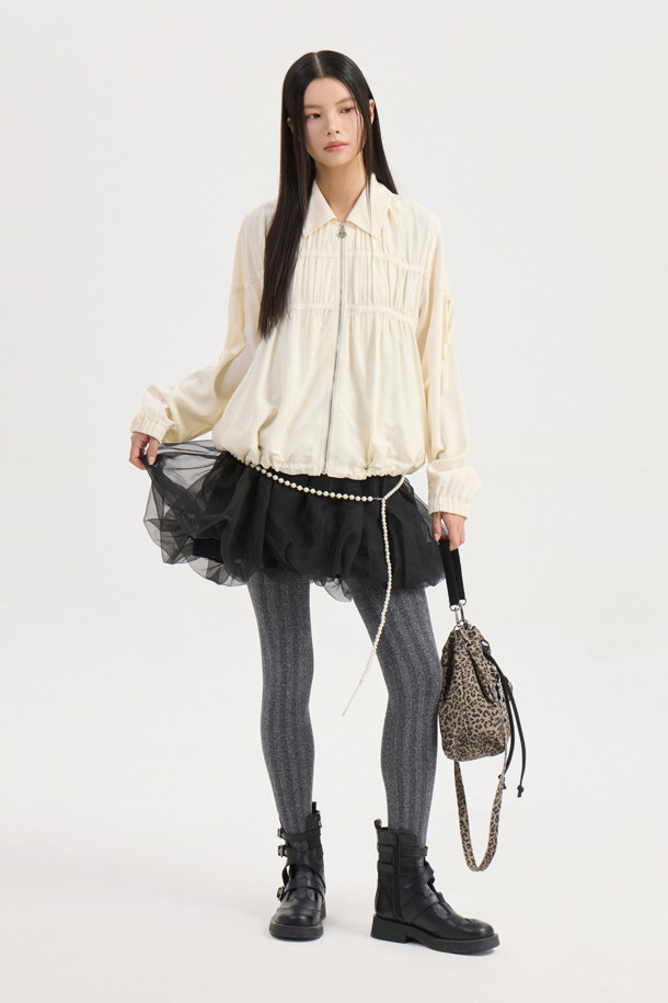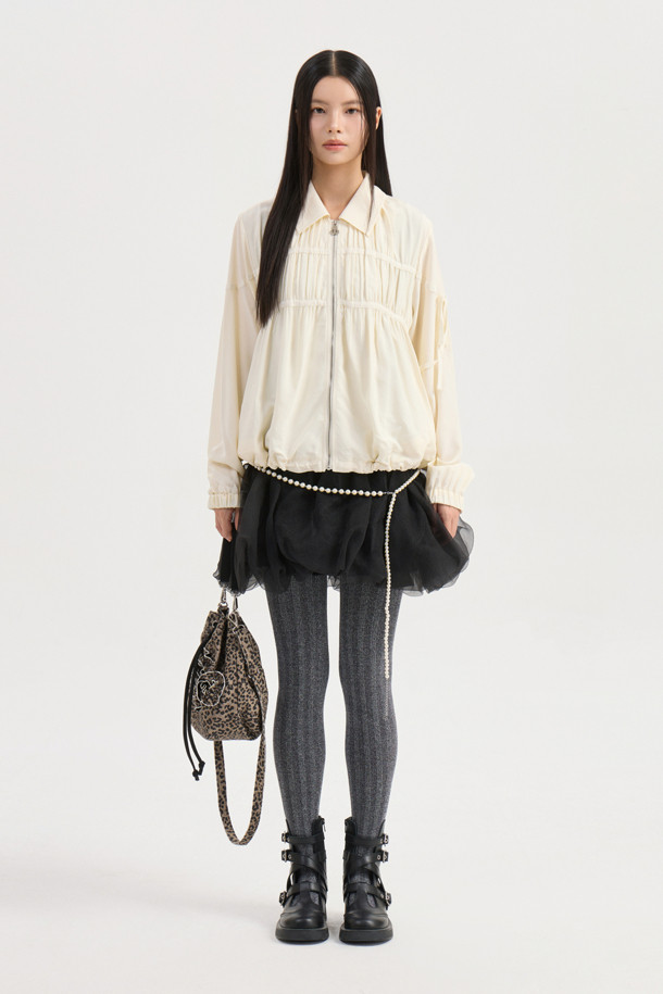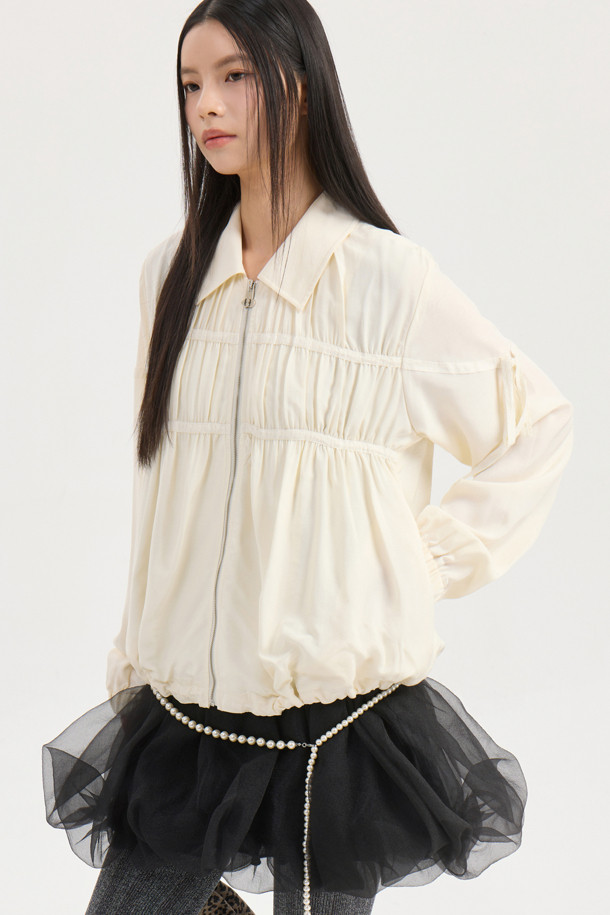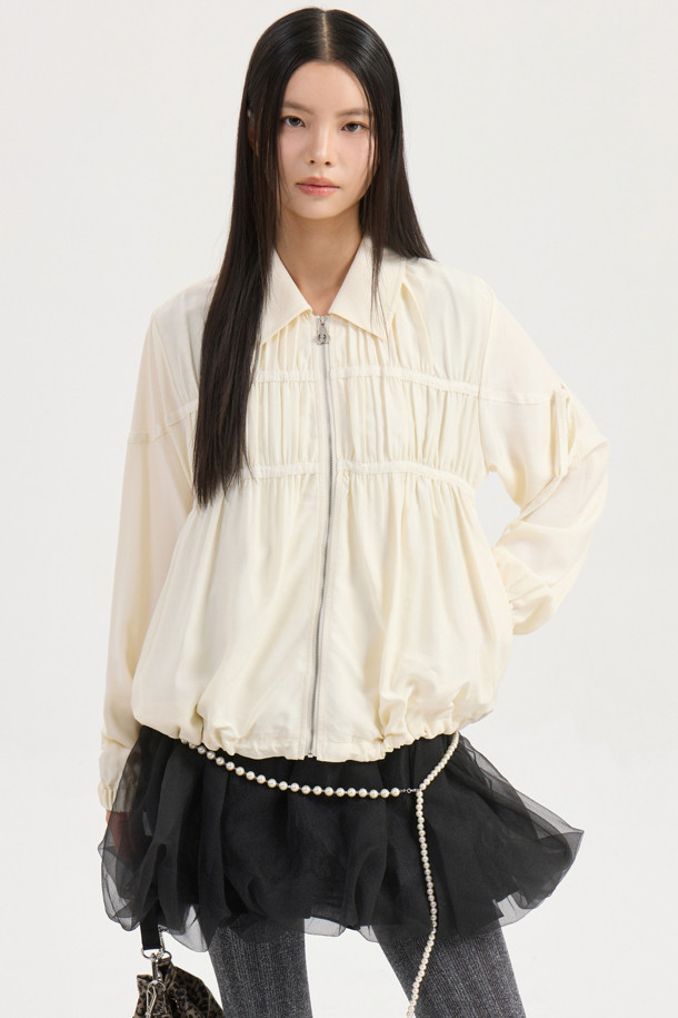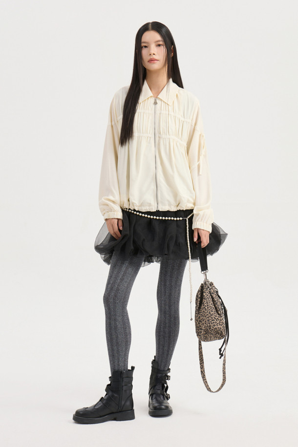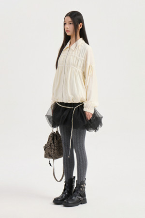 Collar Sheer Zip Up Jumper (ivory)