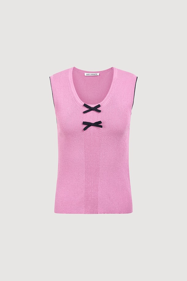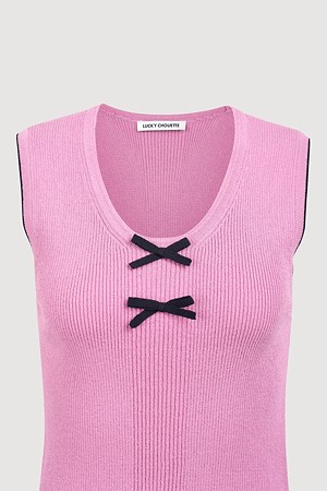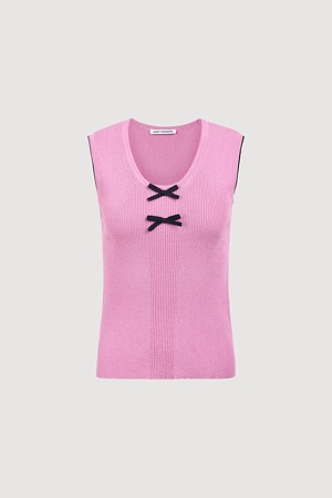 Ribbon Point Sleeveless Knit Pullover (pink)